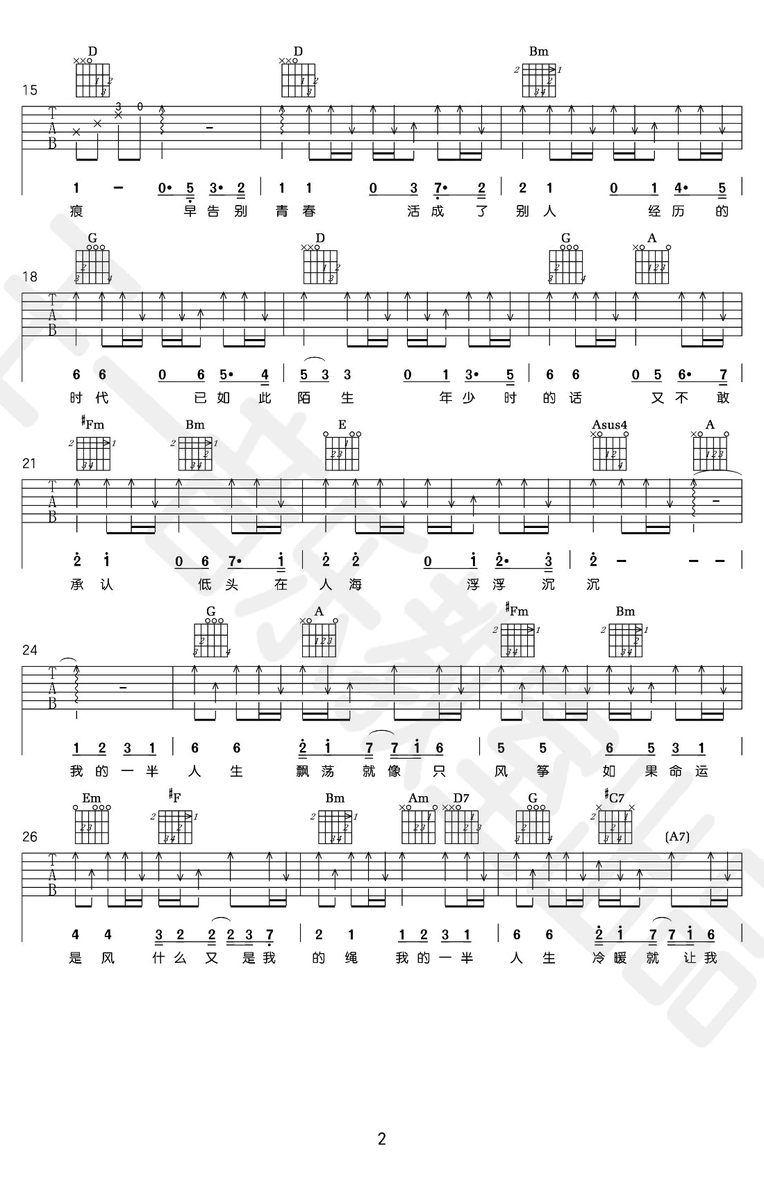 曲谱介绍: 一半人生吉他谱采用了F调指法。由王一音乐教室编配完成。在五月天他们的歌曲当中,永不缺席的是励志与坚持的力量,还有那个永不褪色的青春的味道。每一次听到五月天的歌曲都会让人感动的涕泗横流,在他们的歌曲之中总是能够找到自己的故事,《一半人生》的励志味道特别浓郁,和所搭配的电影《飞驰人生》的励志主题非常契合,同时,阿信演唱感染力十足,让人为之感动,旋律朗朗上口,让人一下子就记住了。听兄弟说,爱情字典吉他谱听了耳朵会怀孕,快快学起来,学完去撩妹! 吉他弹唱演示及视频教学 吉他弹唱演示及视频教学