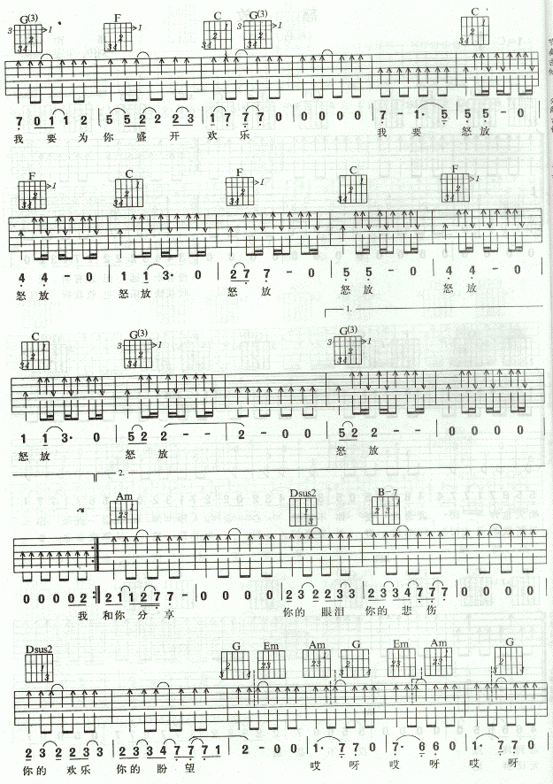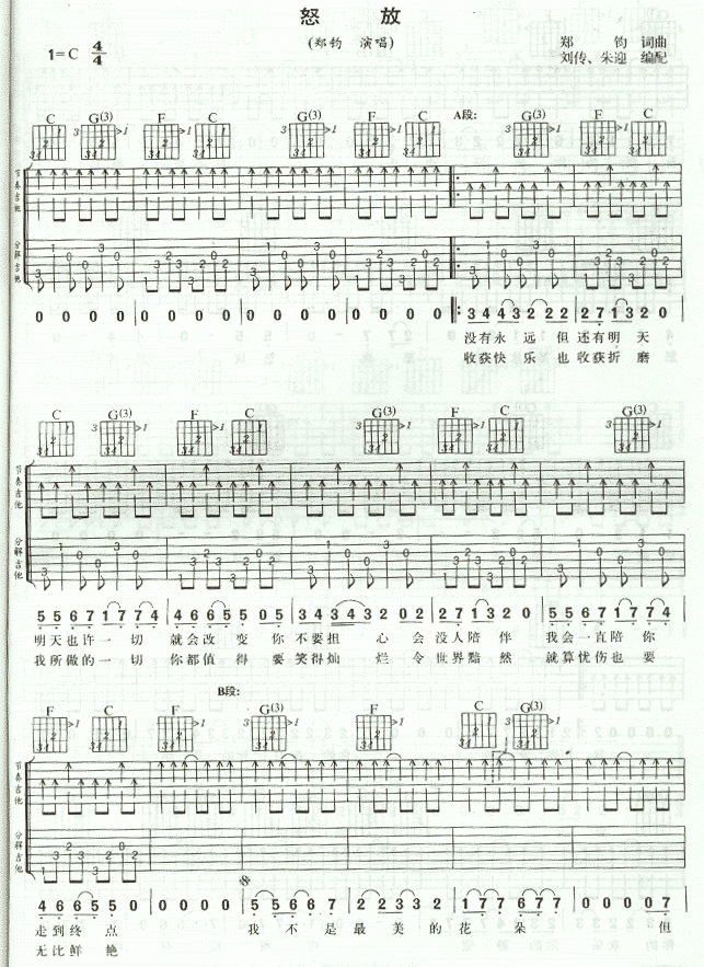 曲谱介绍: 怒放《怒放_》吉他弹唱谱,共有3张高清图谱。