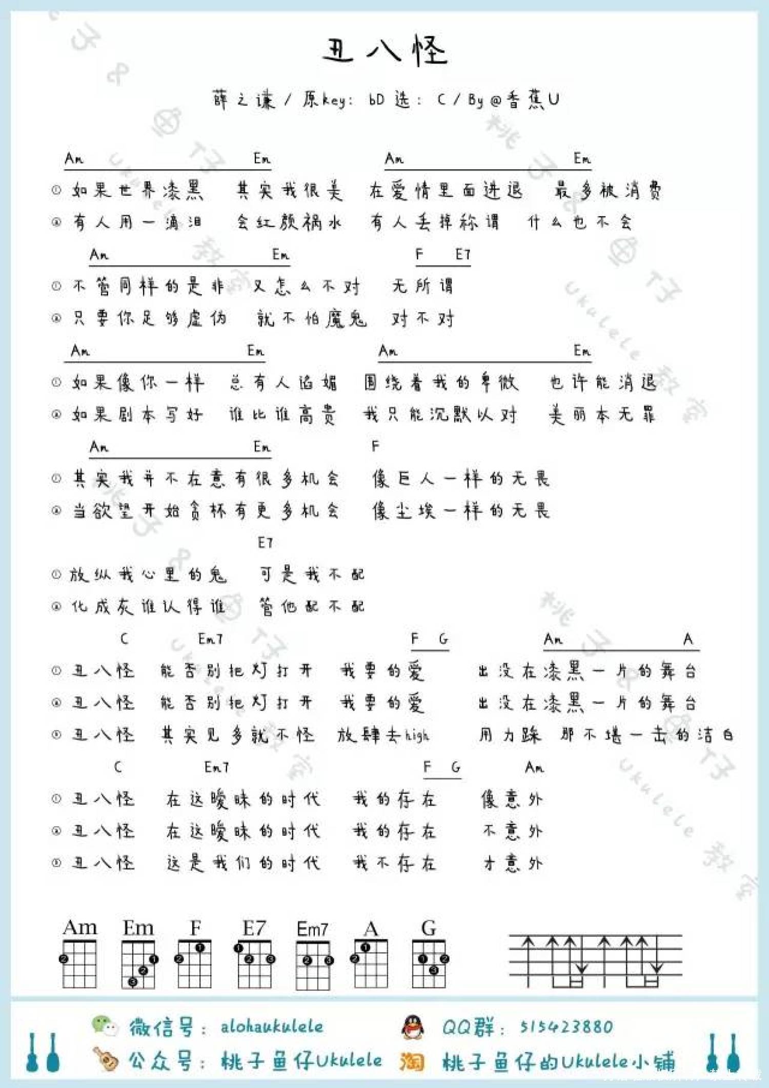 丑八怪尤克里里谱