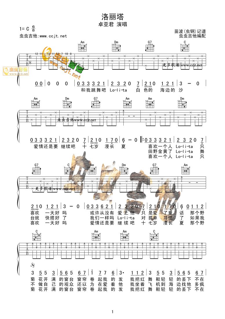 洛丽塔吉他谱 - 卓亚君 - C调吉他弹唱谱