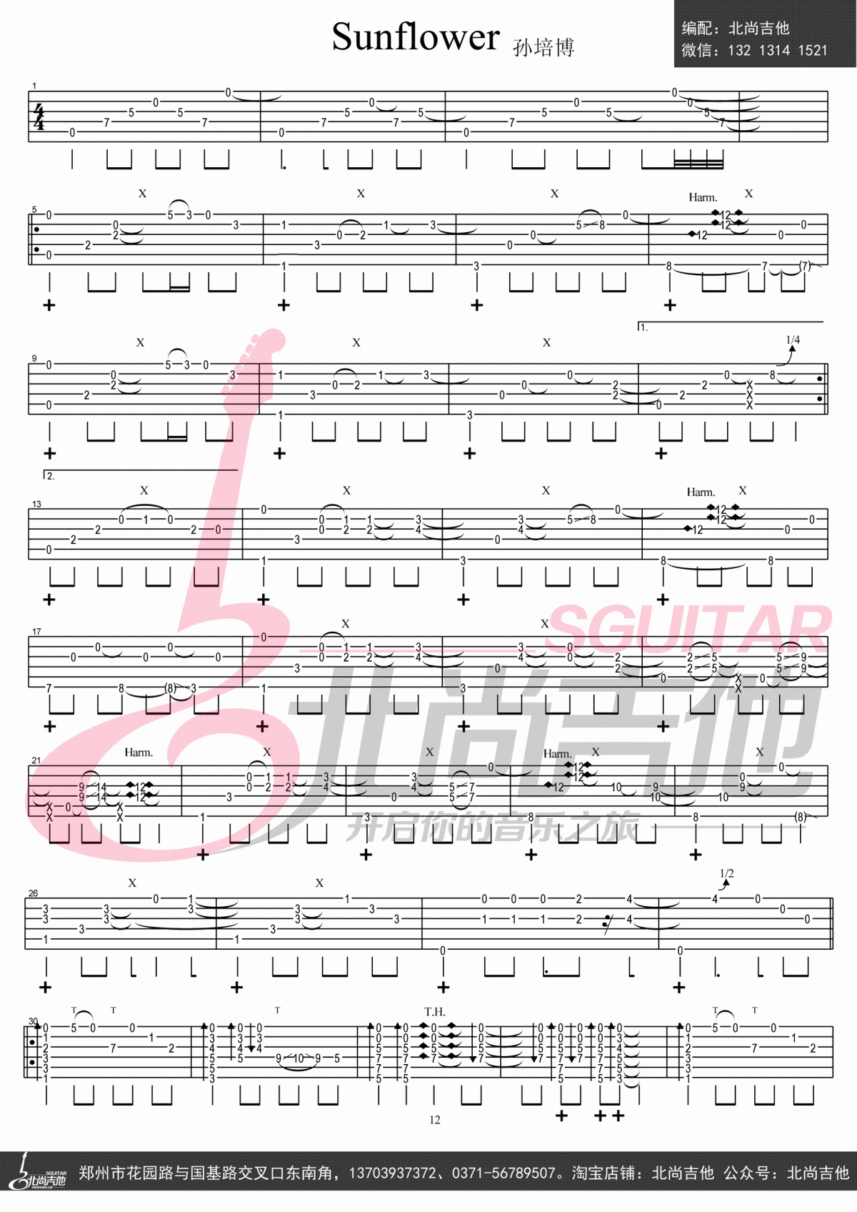 曲谱介绍: 孙培博《太阳花》吉他独奏谱,共有2张高清图谱,免翻页排版设计。