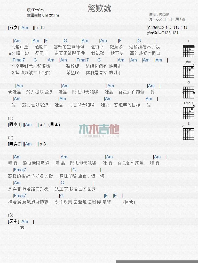 惊叹号_吉他谱 - 惊叹号 - 吉他弹唱谱