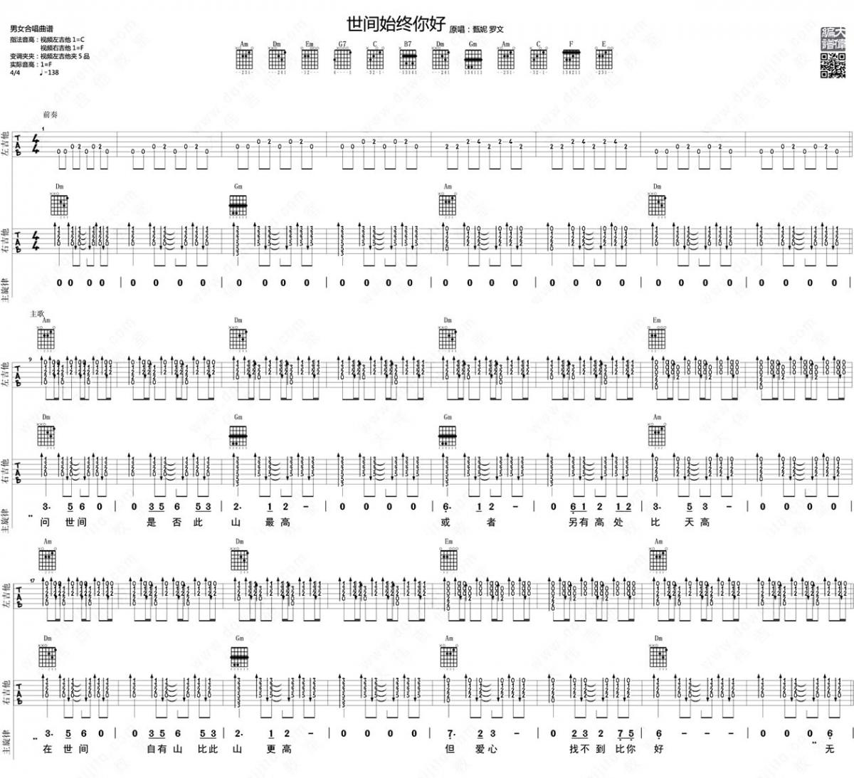 曲谱介绍: 电影《美人鱼》吉他弹唱谱,共有3张高清图谱。