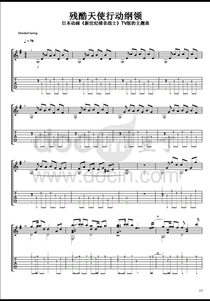 残酷天使的行动纲领吉他谱 - 新世纪福音战士 - 吉他独奏谱