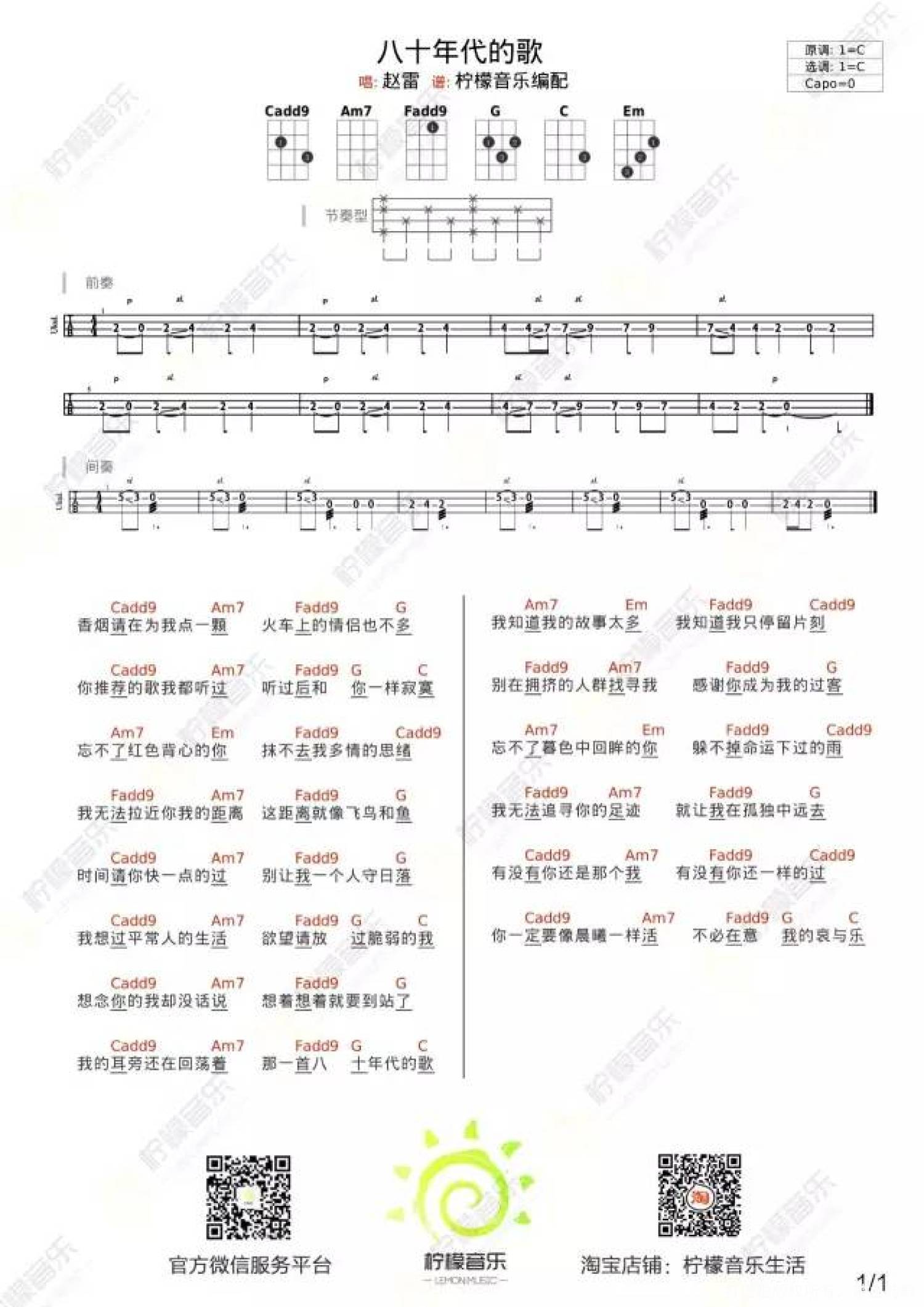 曲谱介绍: 《 八十年代的歌 》尤克里里曲谱
