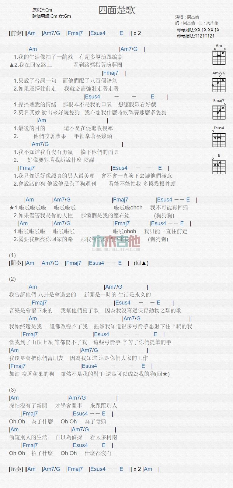 四面楚歌_吉他谱 - 四面楚歌 - 吉他弹唱谱