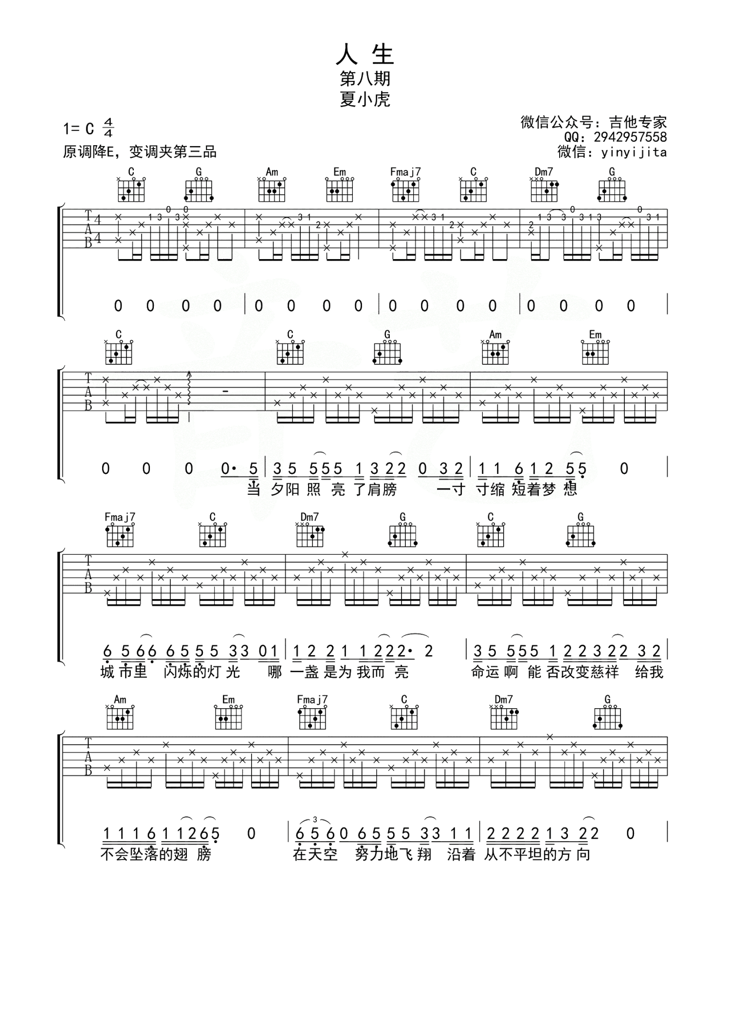 人生吉他谱 - 夏小虎 - C调吉他弹唱谱