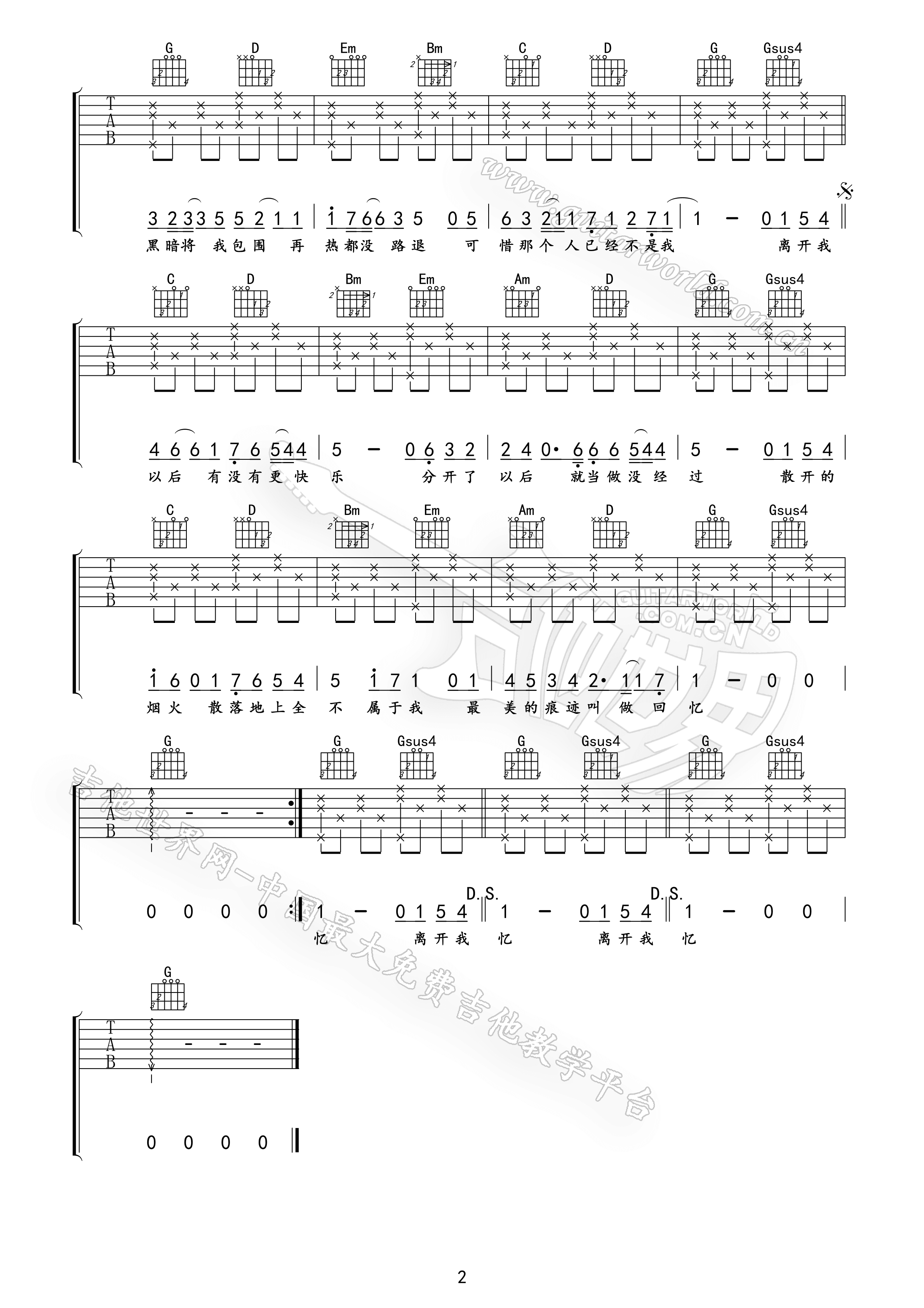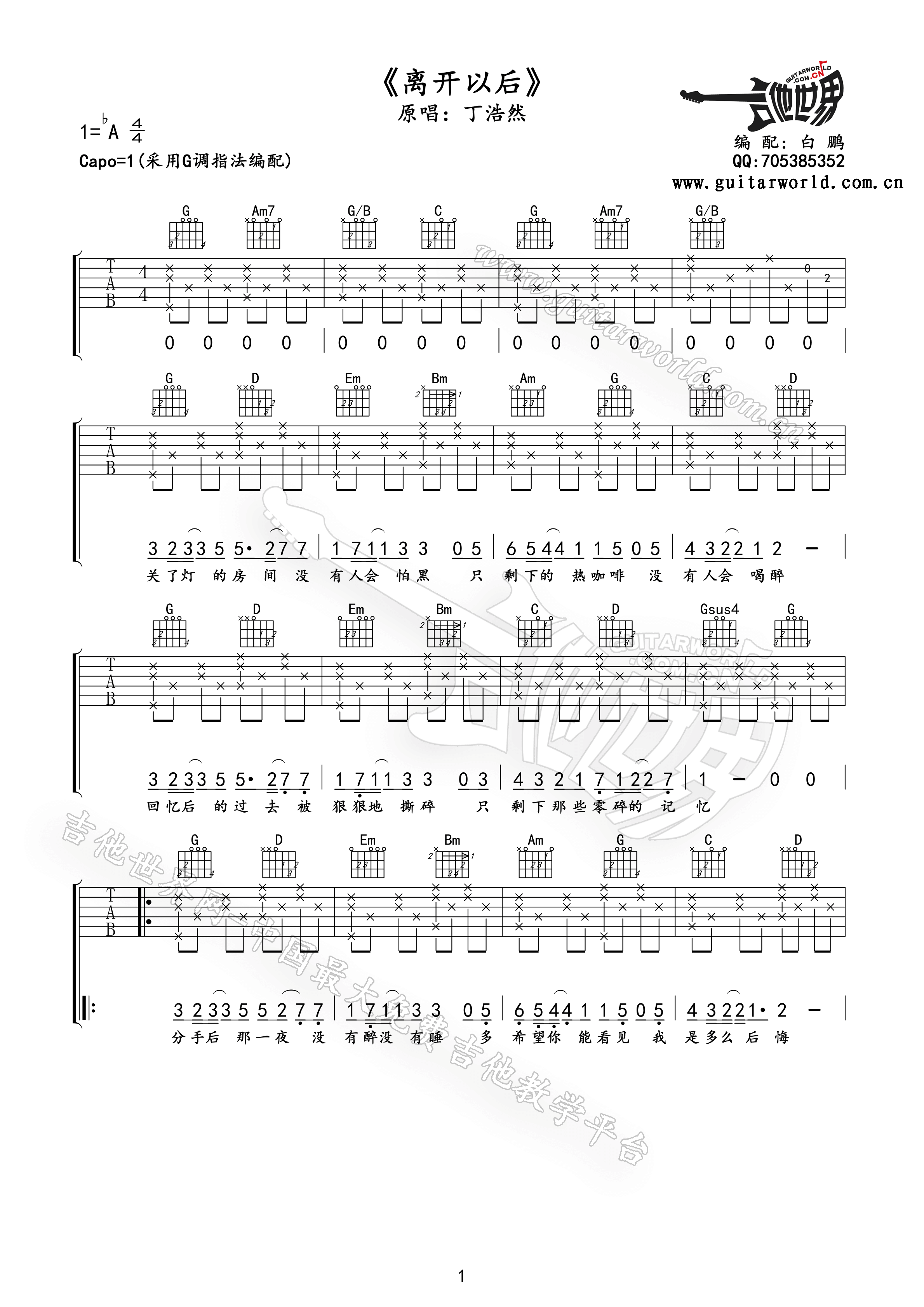 当前位置:琴谱网>吉他弹唱>离开以后