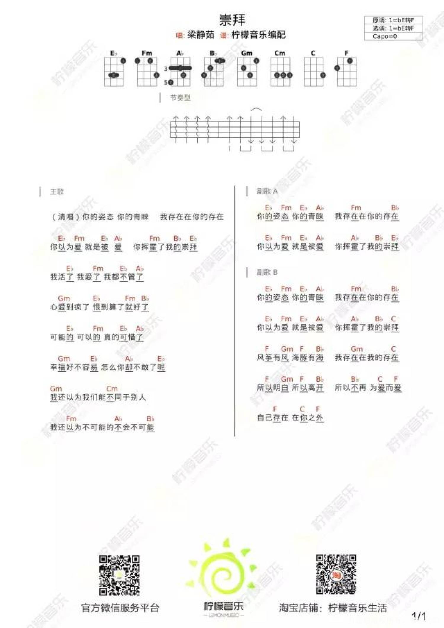 曲谱介绍: 《崇拜》尤克里里曲谱