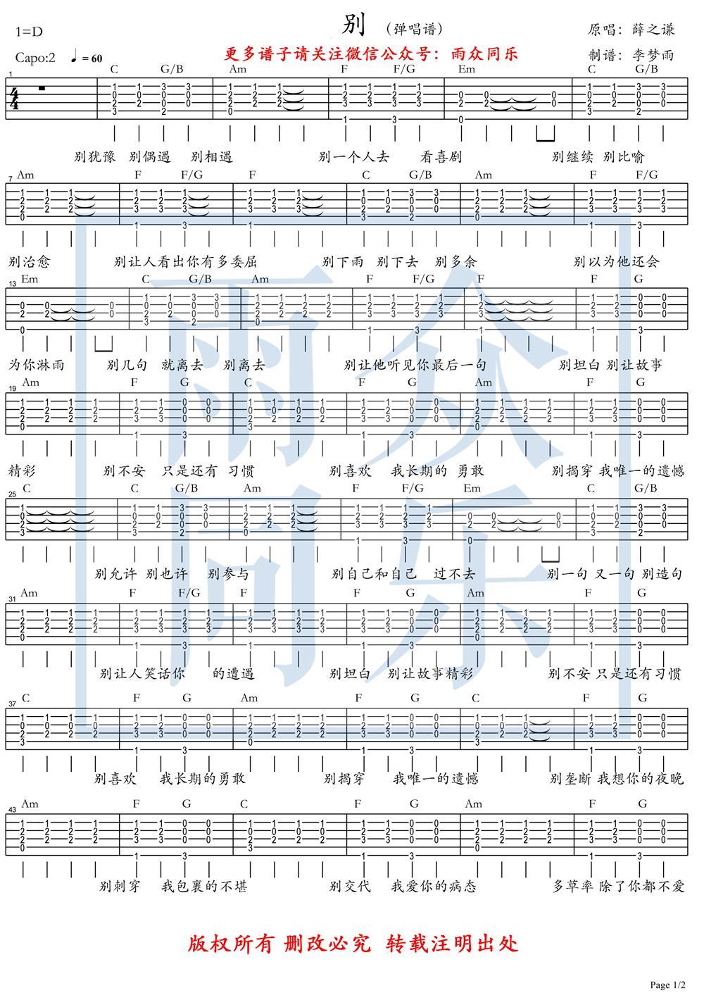 曲谱介绍: 别《别_》吉他弹唱谱,共有2张高清图谱,免翻页排版设计。