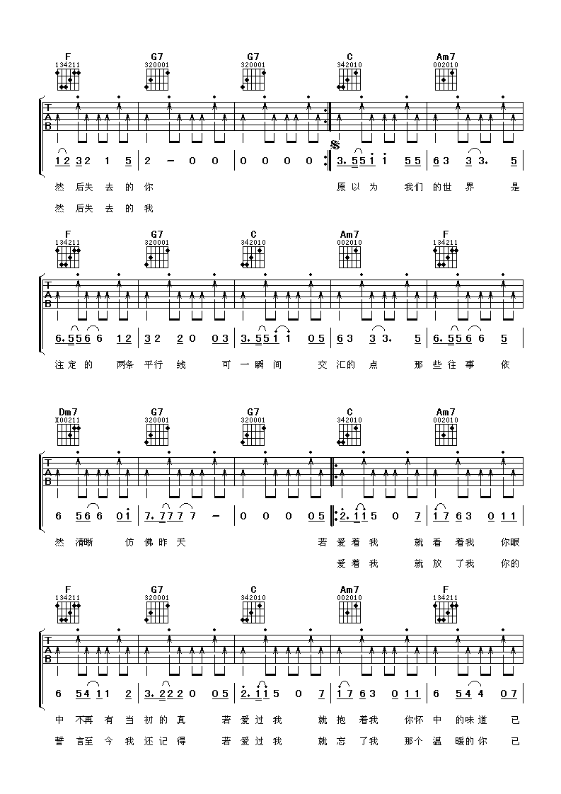 曲谱介绍: 若爱过我吉他谱采用了C调指法,由阿潘音乐工场编配完成。重要提示:迷梦吉他谱更新啦,学完这首后,顺便把下首学了吧。