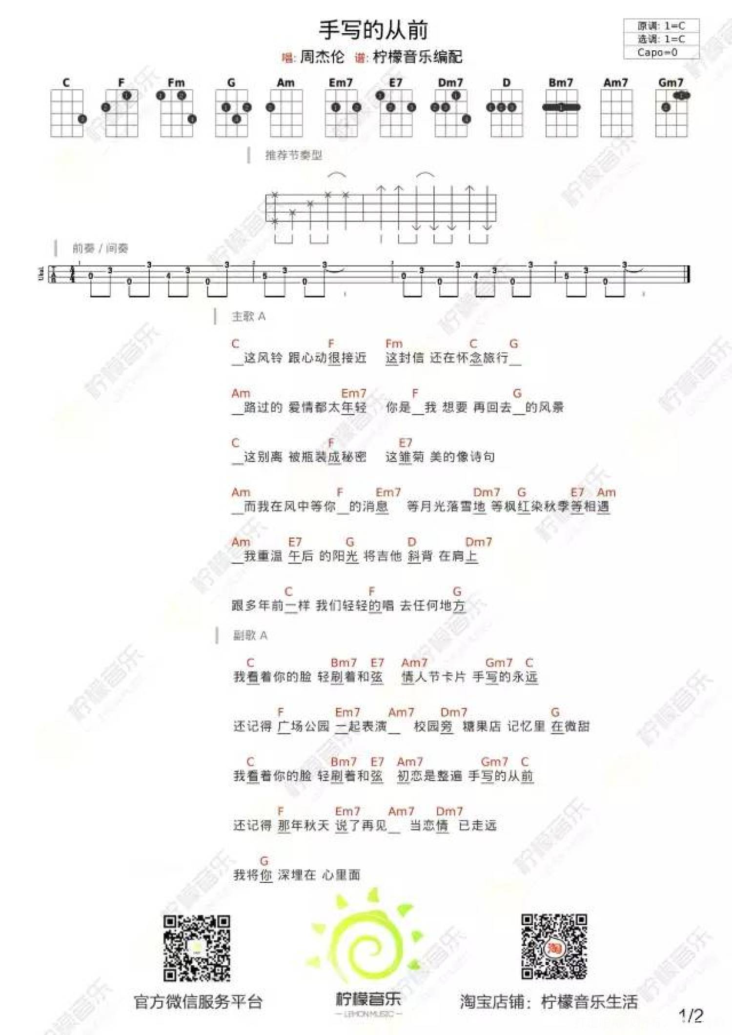 当前位置:琴谱网>尤克里里>手写的从前