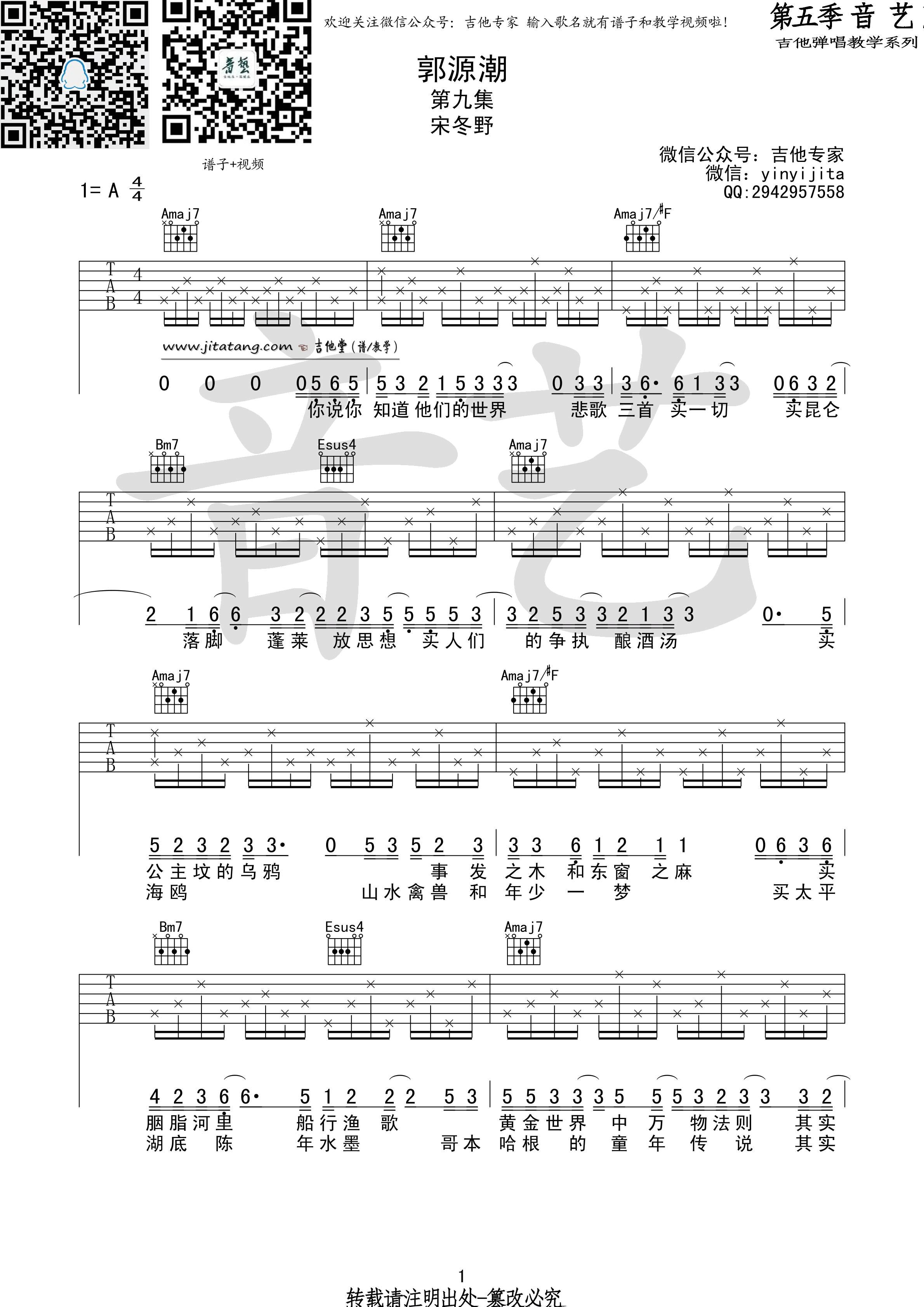 郭源朝吉他谱 - 宋冬野 - A调吉他弹唱谱