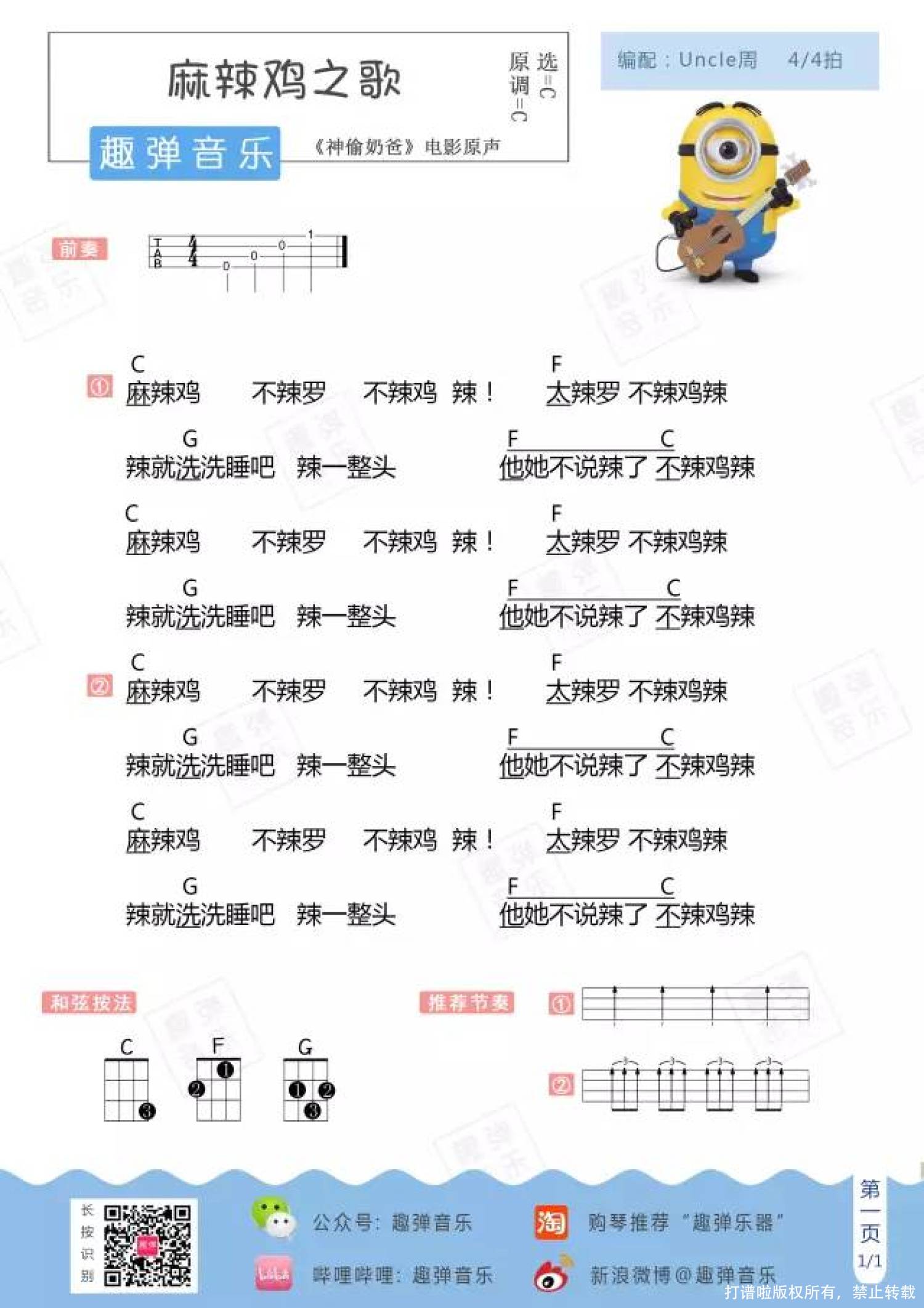 当前位置:琴谱网>尤克里里>麻辣鸡之歌