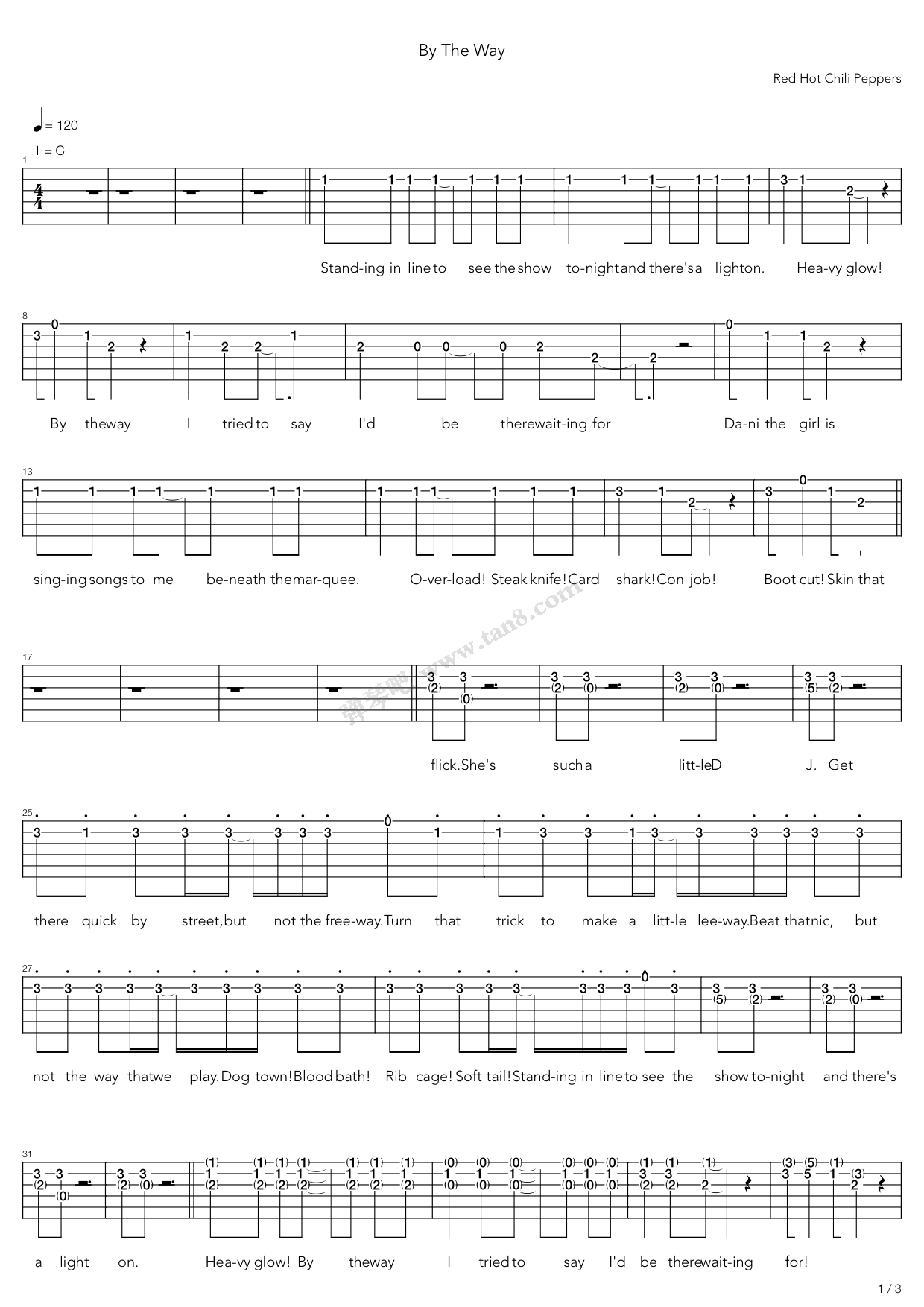 by the way吉他谱 - by - C调吉他弹唱谱