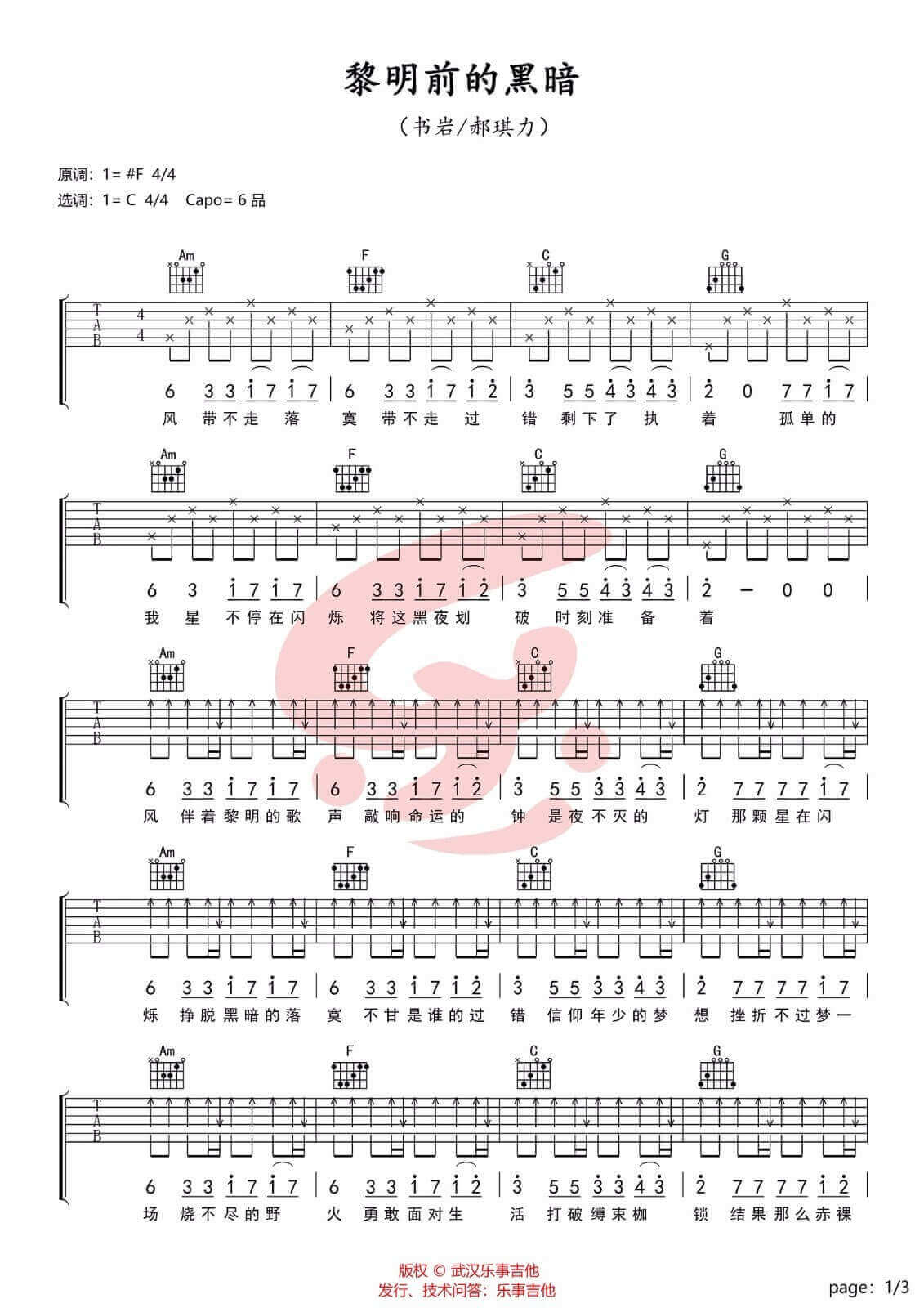 黎明前的黑暗吉他谱 - 书岩 - C调吉他弹唱谱