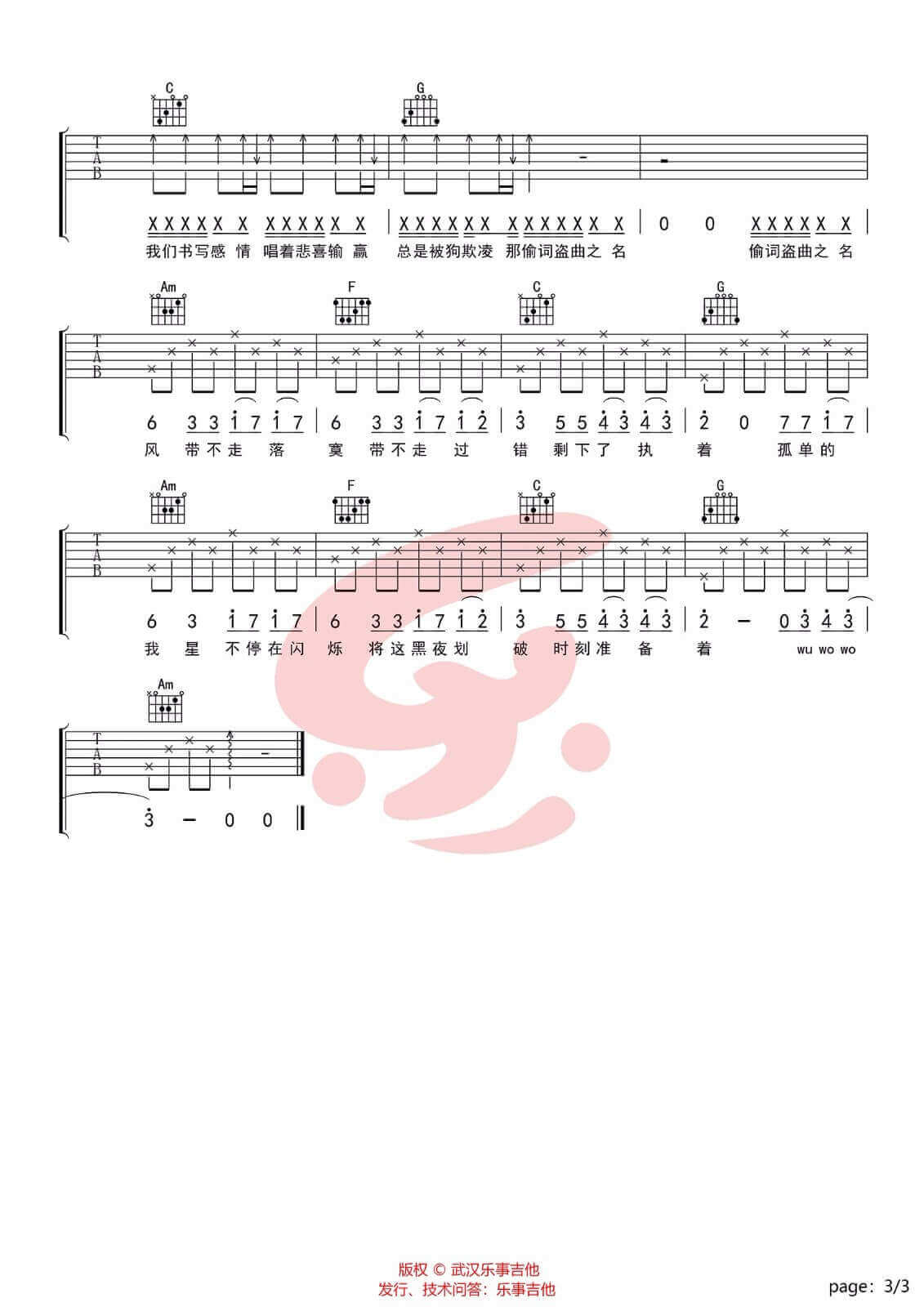 吉他弹唱C调来源:武汉乐事吉他191 浏览2024-02-03 17:19发布图谱共3页