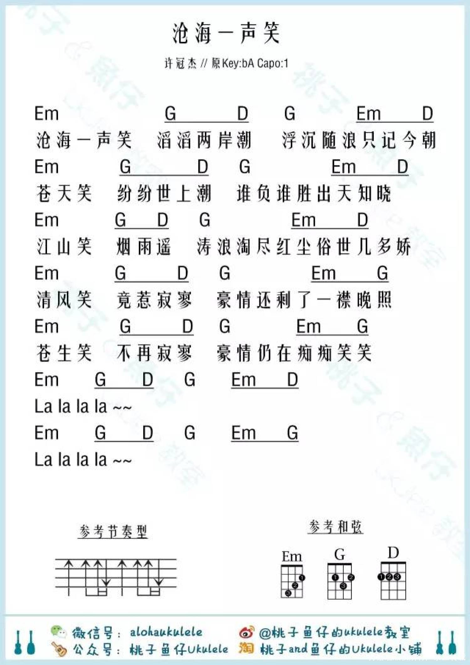 沧海一声笑尤克里里谱
