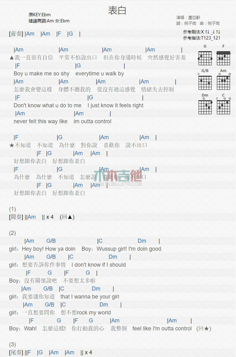 当前位置:琴谱网>吉他弹唱>表白