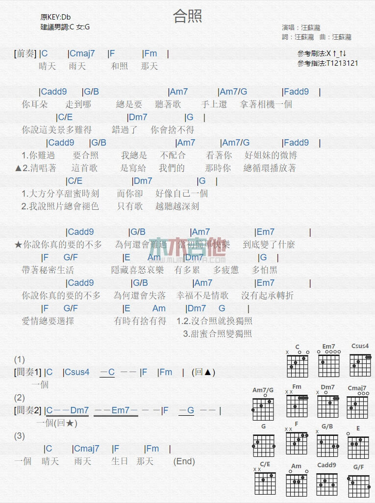 当前位置:琴谱网>吉他弹唱>合照