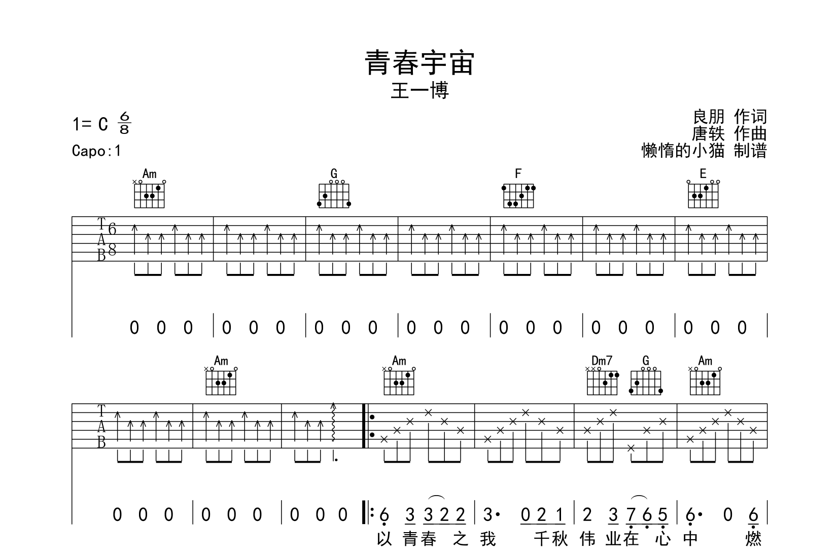 青春宇宙吉他谱 - 王一博 - C调吉他弹唱谱