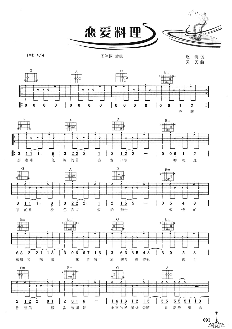 恋爱料理吉他谱 - 周笔畅 - D调吉他弹唱谱