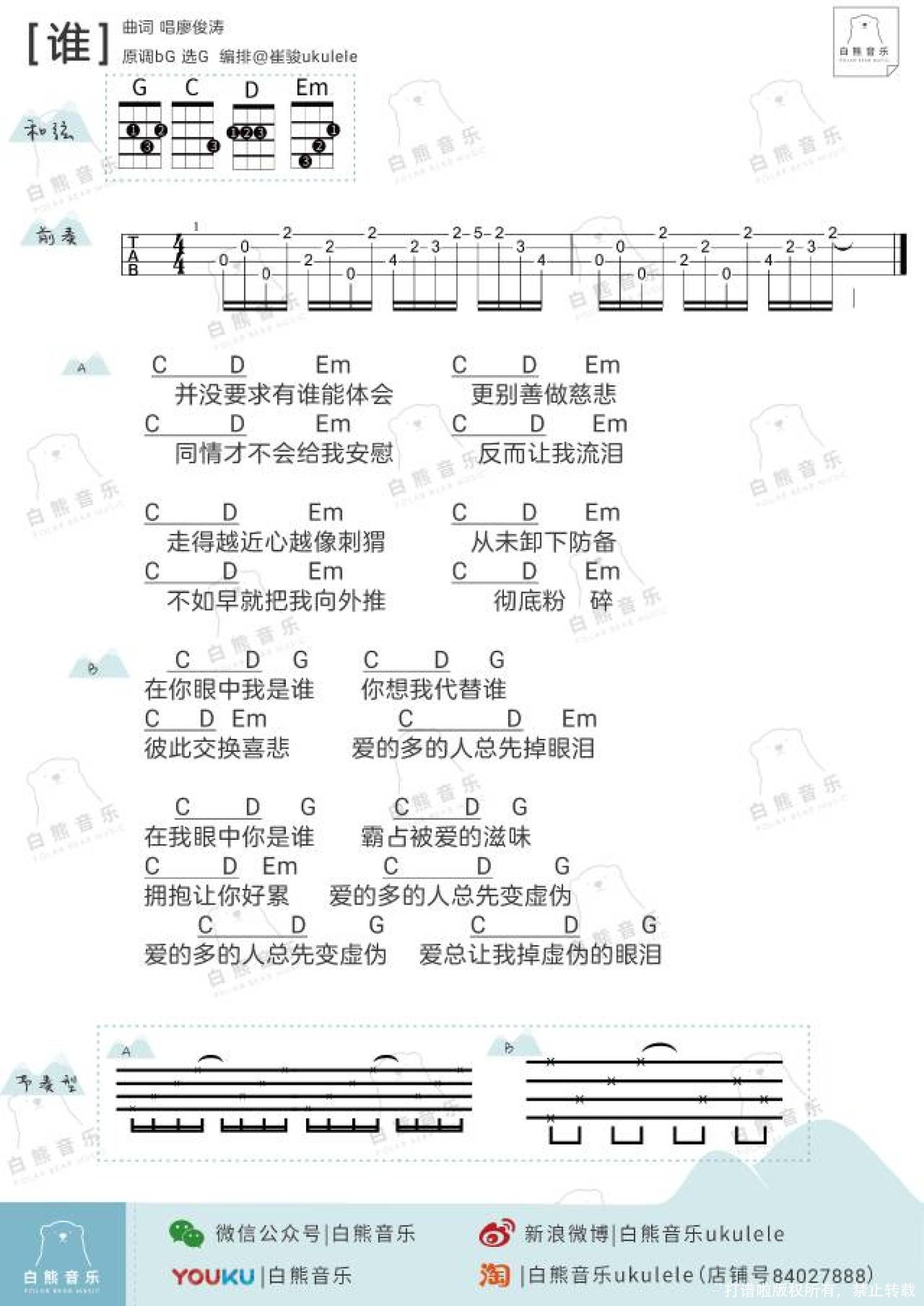 曲谱介绍:  ‹‹谁››尤克里里曲谱