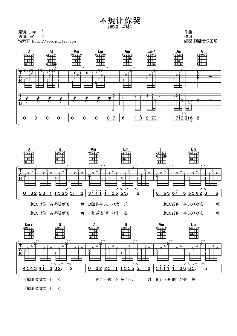 不想让你哭吉他谱 - 王强 - C调吉他弹唱谱