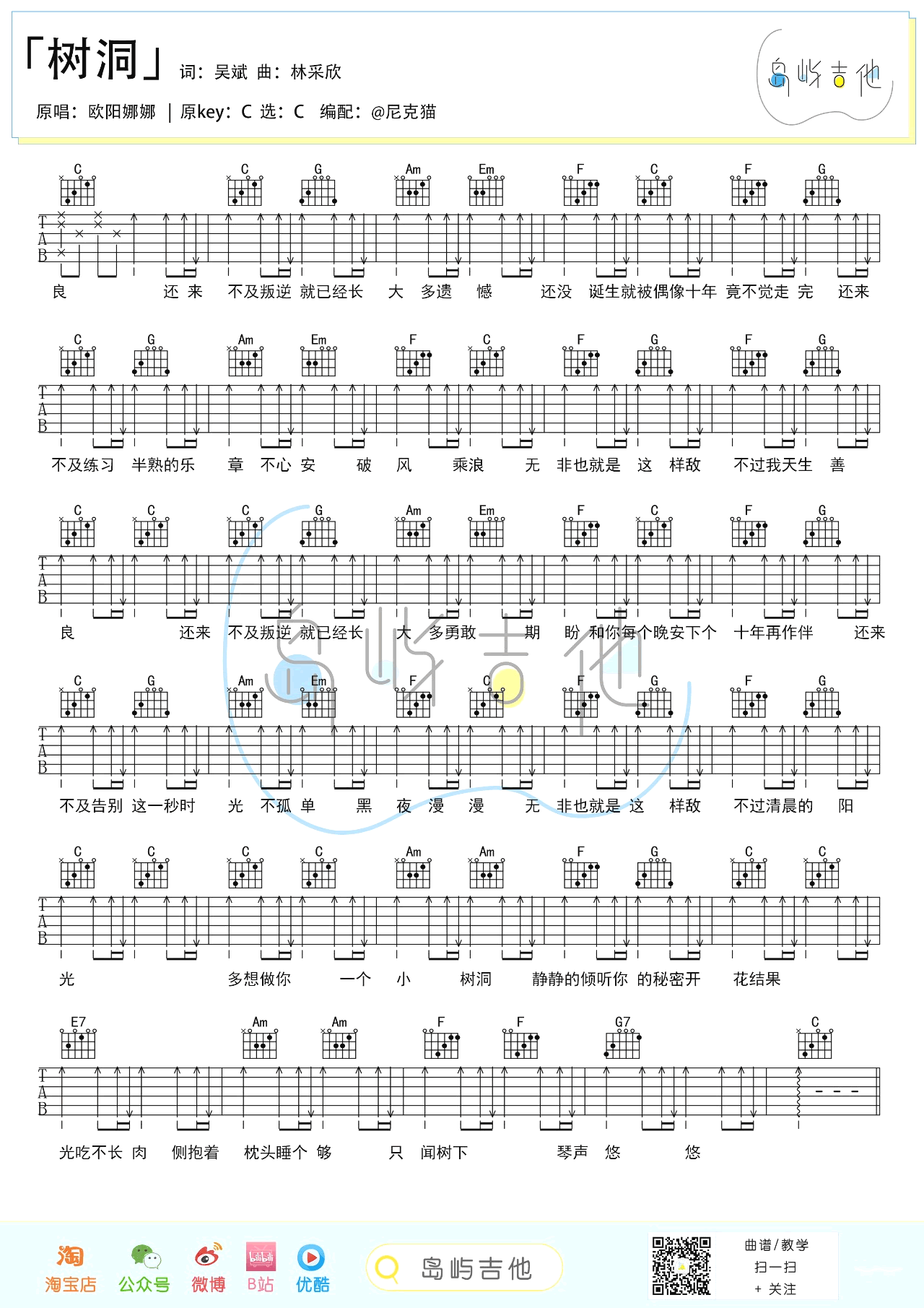 树洞吉他谱 - 欧阳娜娜 - C调吉他弹唱谱