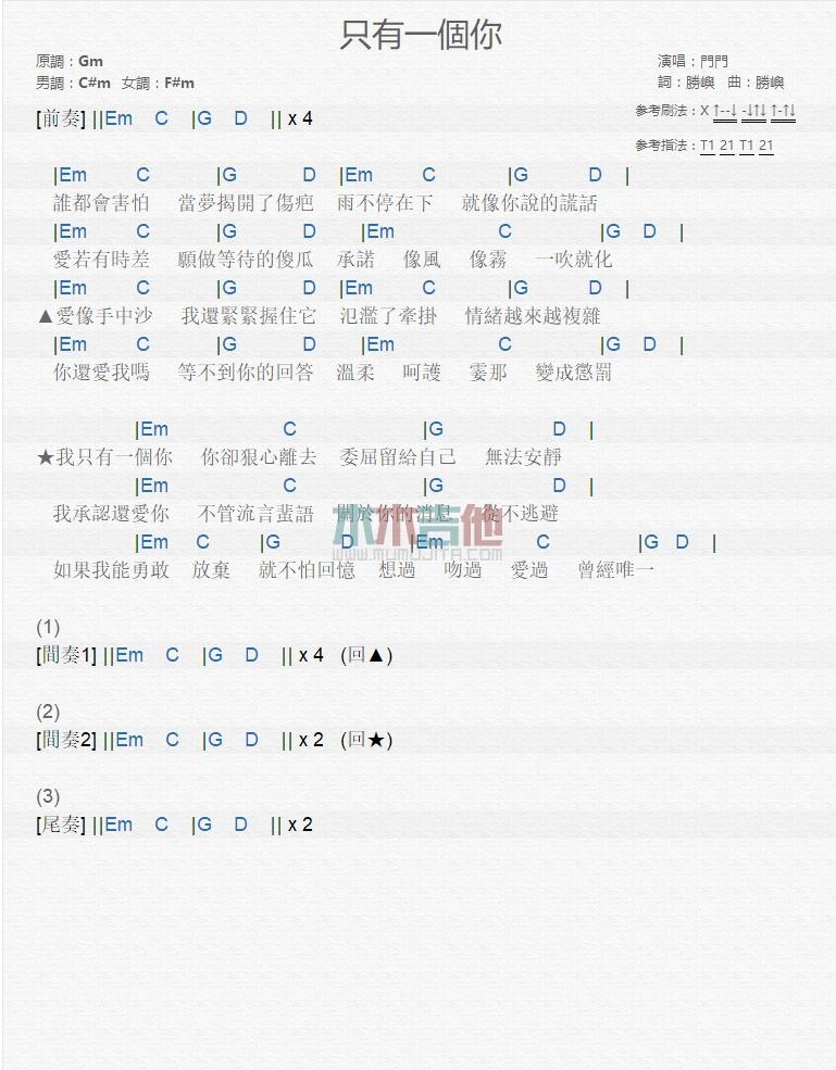 只有一个你_吉他谱 - 只有一个你 - 吉他弹唱谱