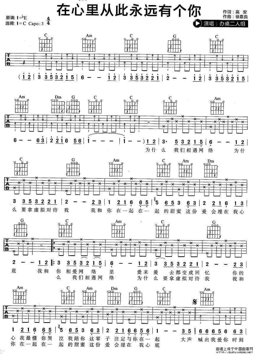 当前位置:琴谱网>吉他弹唱>在心里从此永远有个你