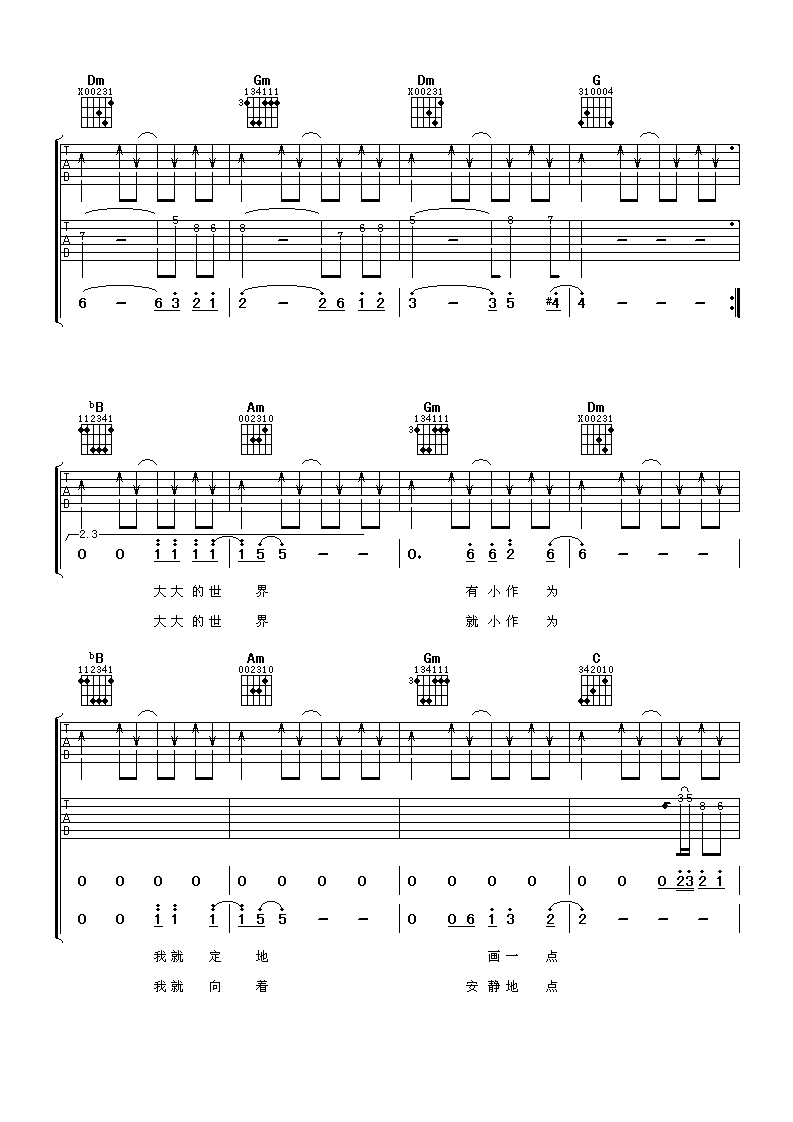 当前位置:琴谱网>吉他弹唱>大世界小作为