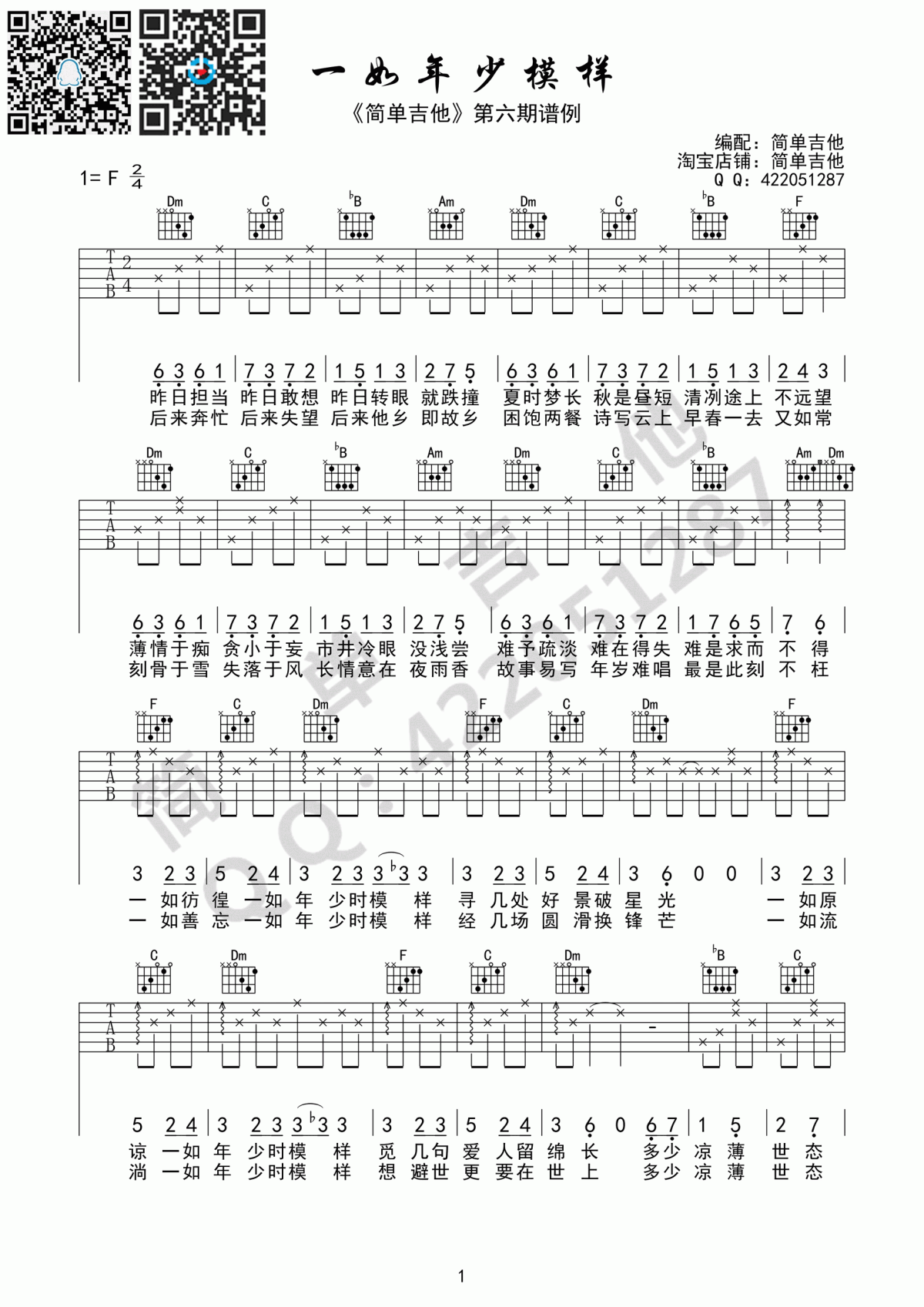当前位置:琴谱网>吉他弹唱>一如年少模样