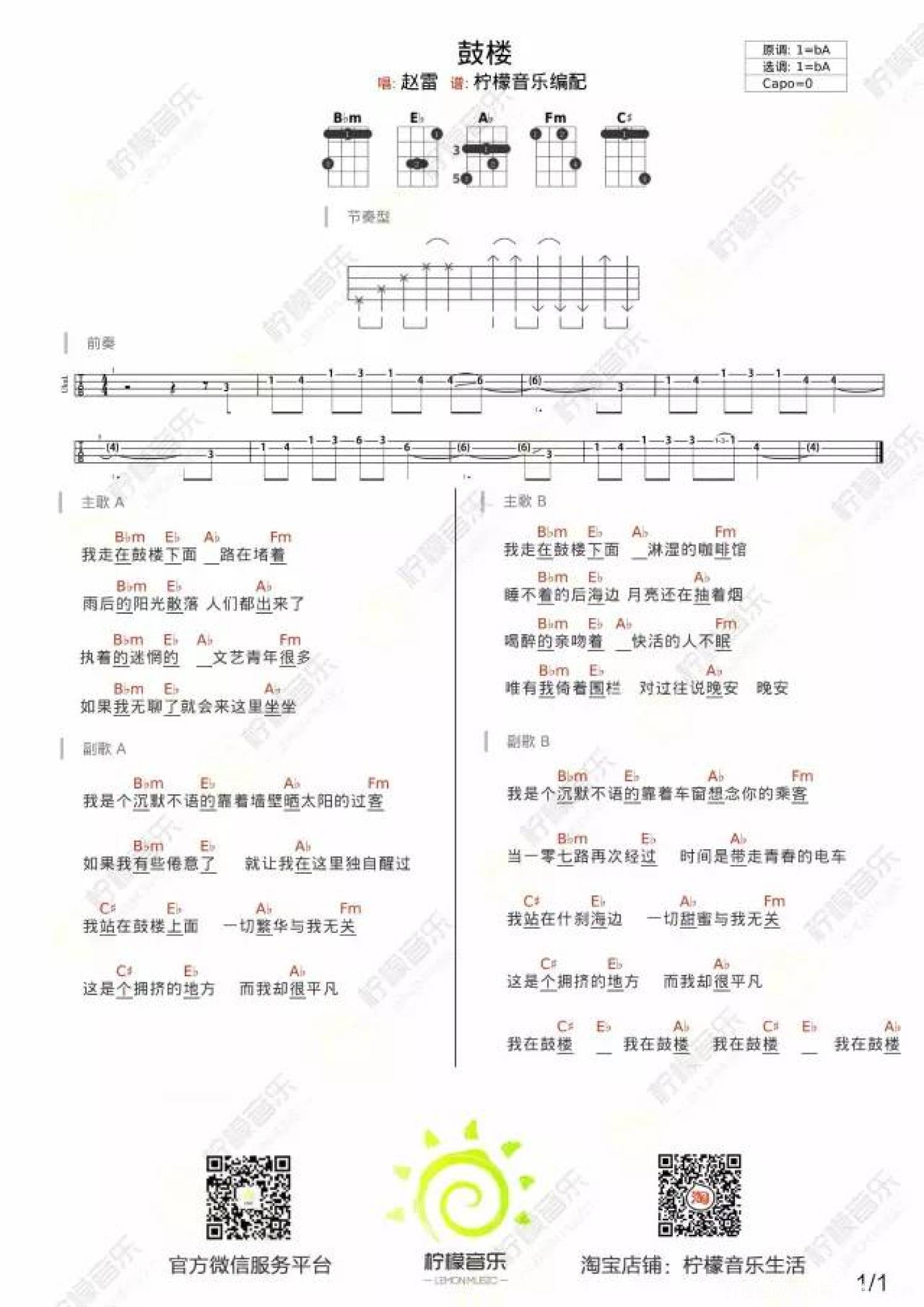 曲谱介绍: 《鼓楼》尤克里里曲谱