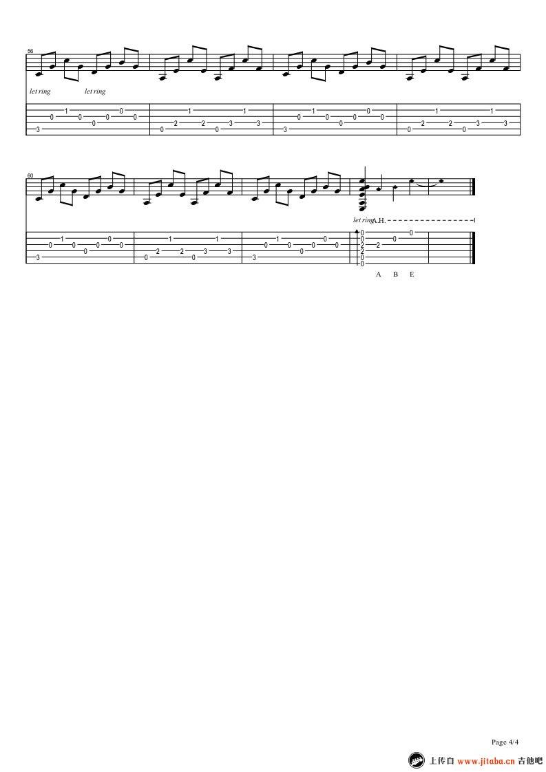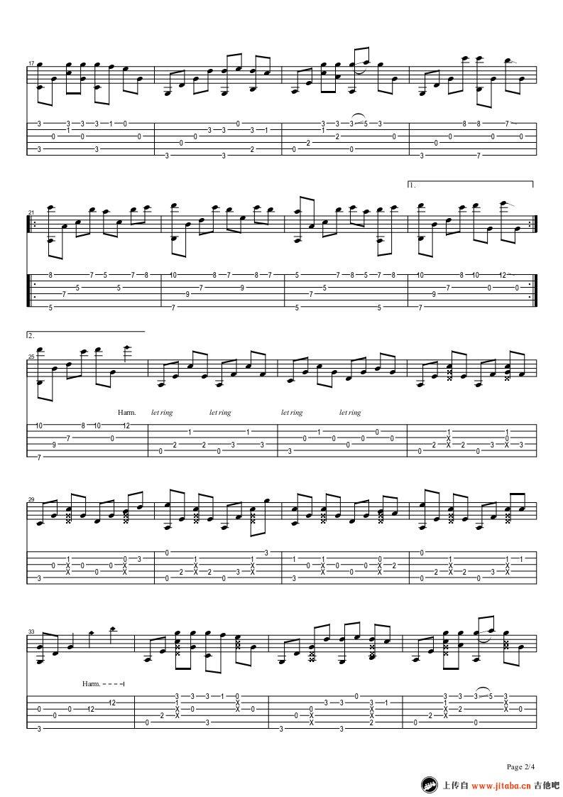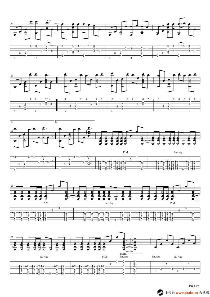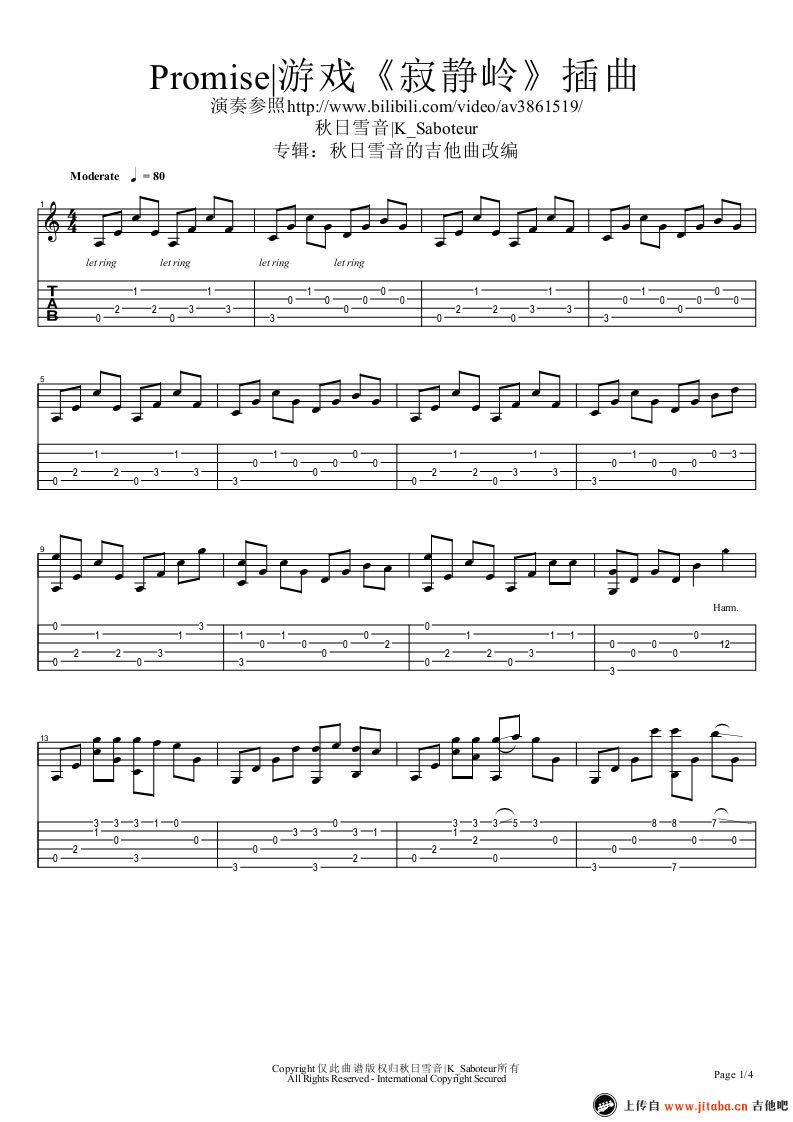 曲谱介绍: 游戏插曲《寂静岭2》吉他独奏谱,共有4张高清图谱。