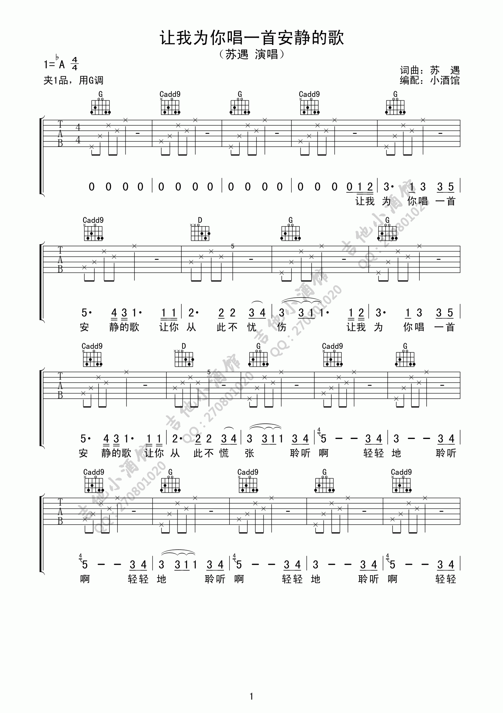 当前位置:琴谱网>吉他弹唱>让我为你唱一首安静的歌