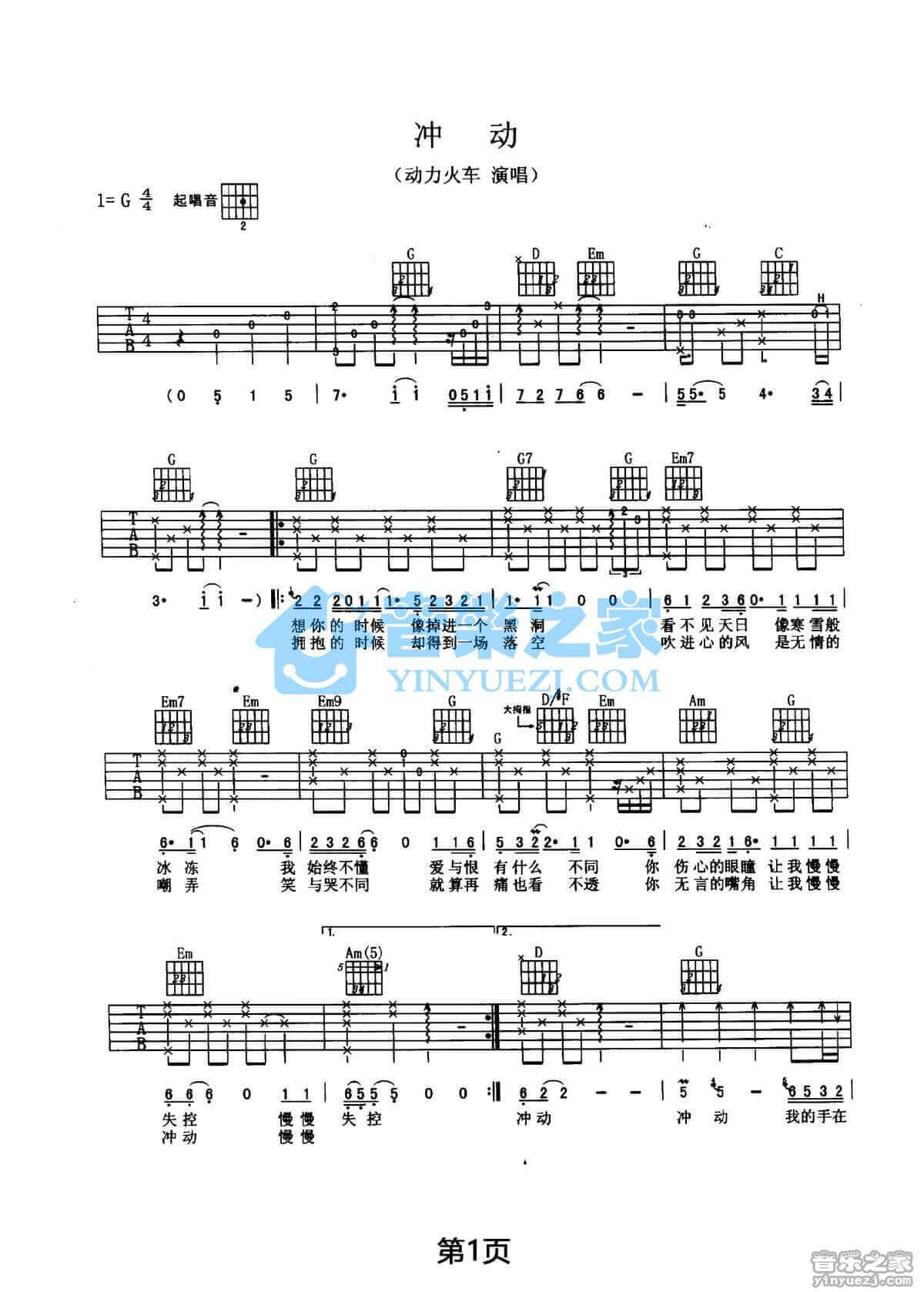 当前位置:琴谱网>吉他弹唱>冲动