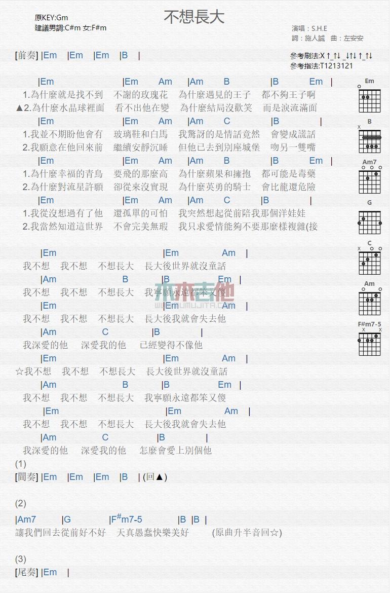 曲谱介绍: 不想长大《不想长大_》吉他弹唱谱,共有1张高清图谱,免翻页排版设计。