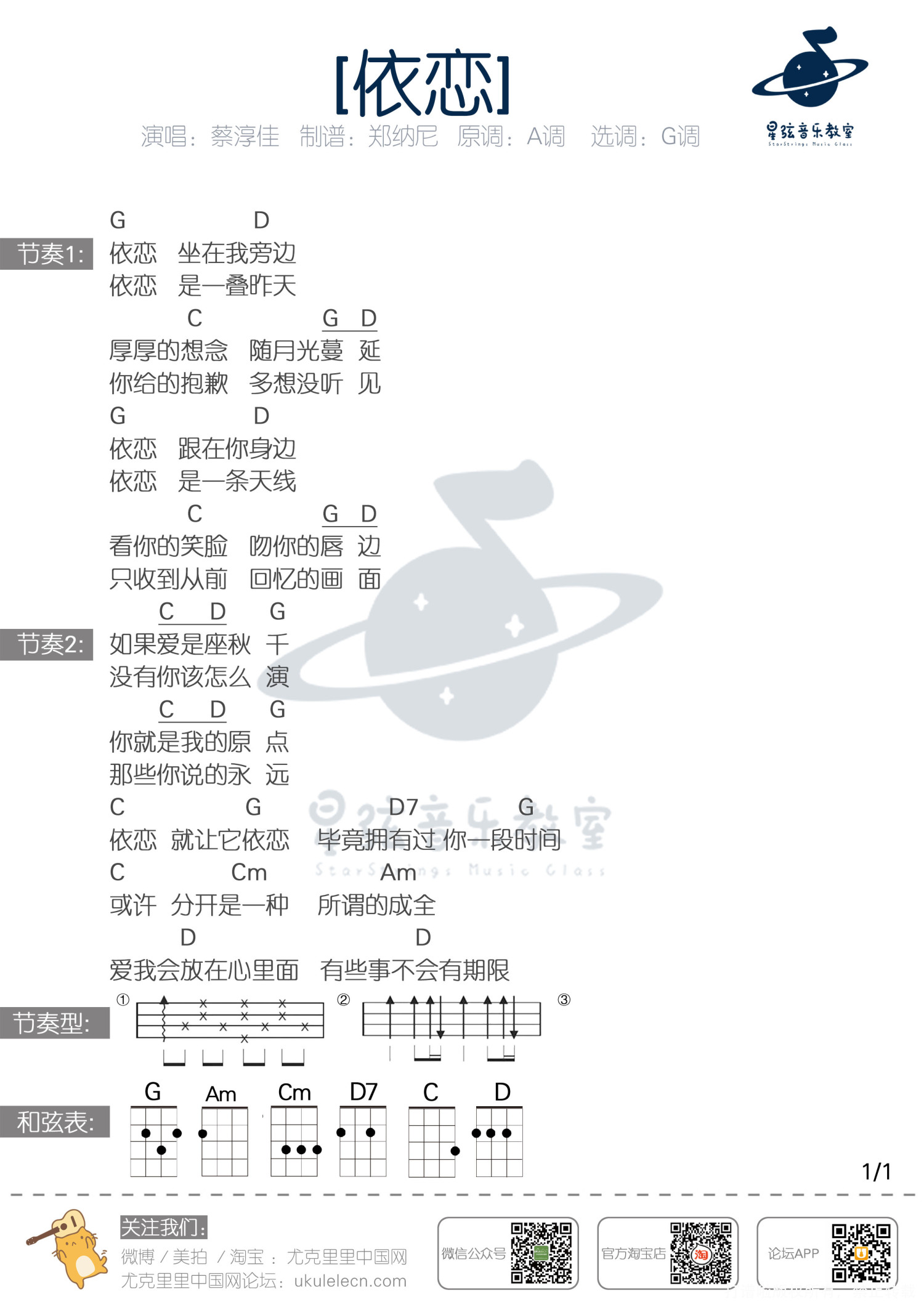 曲谱介绍: 蔡淳佳《依恋》_G调尤克里里谱