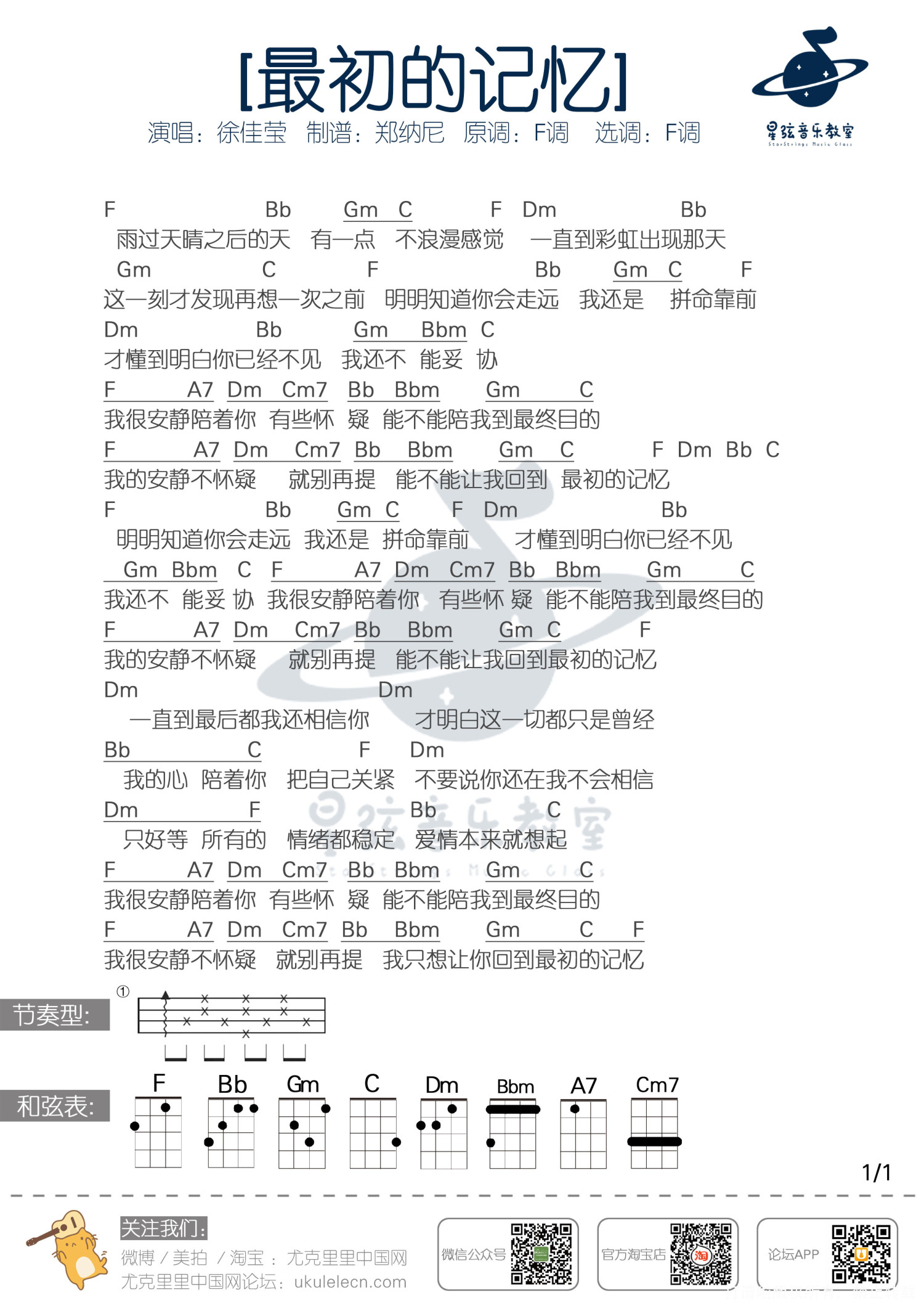 曲谱介绍: 徐佳莹《最初的记忆》_F调尤克里里谱