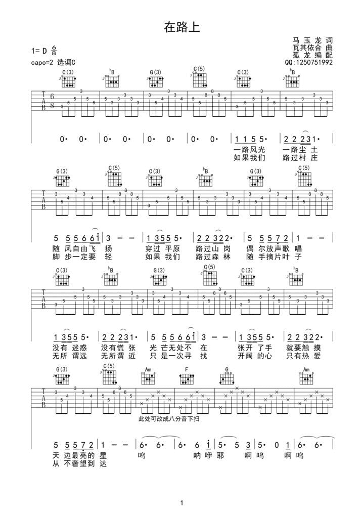 在路上吉他谱 - 瓦其依合 - D调吉他弹唱谱