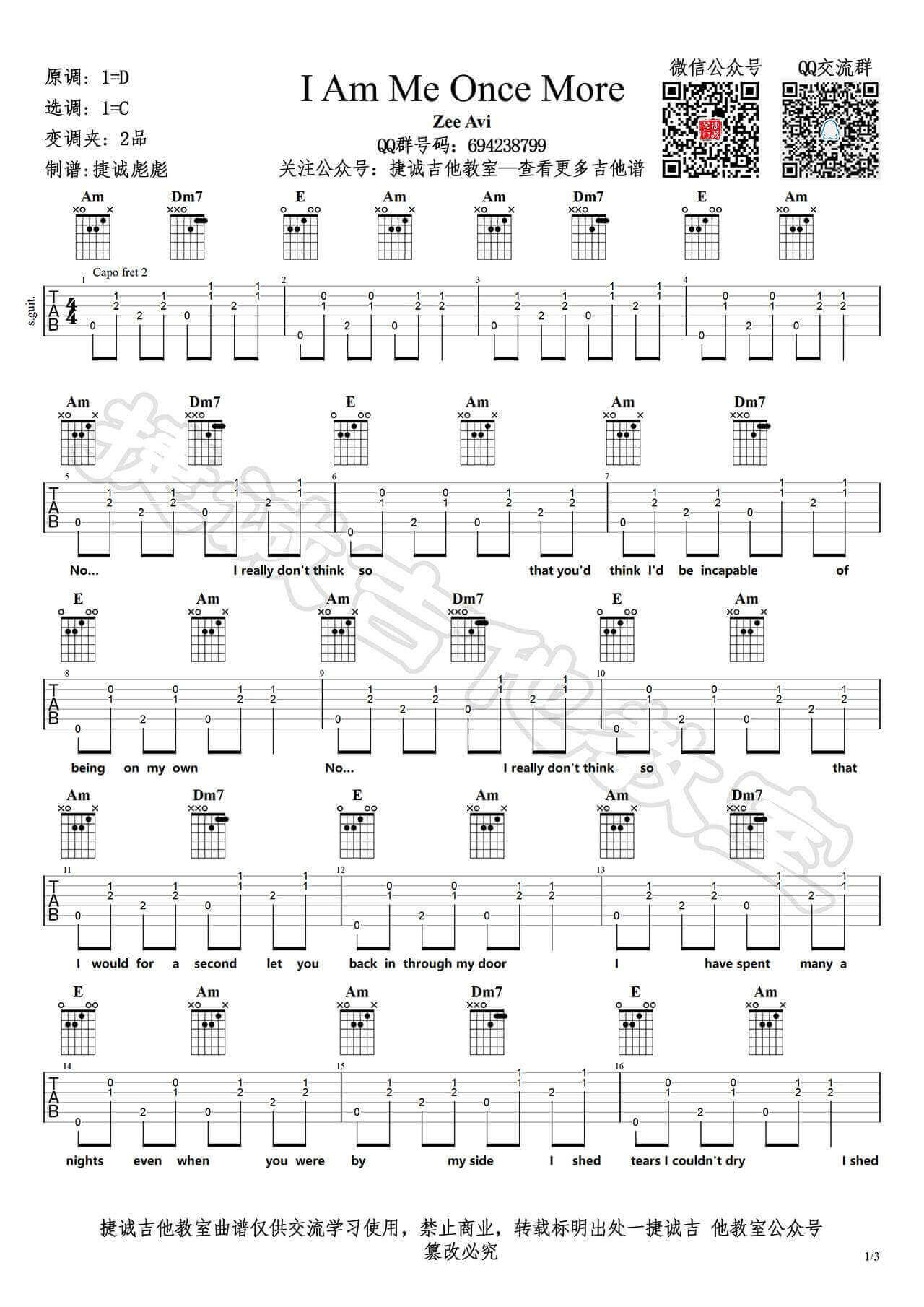 吉他弹唱C调来源:捷诚吉他教室243 浏览2024-02-03 19:59发布图谱共3页