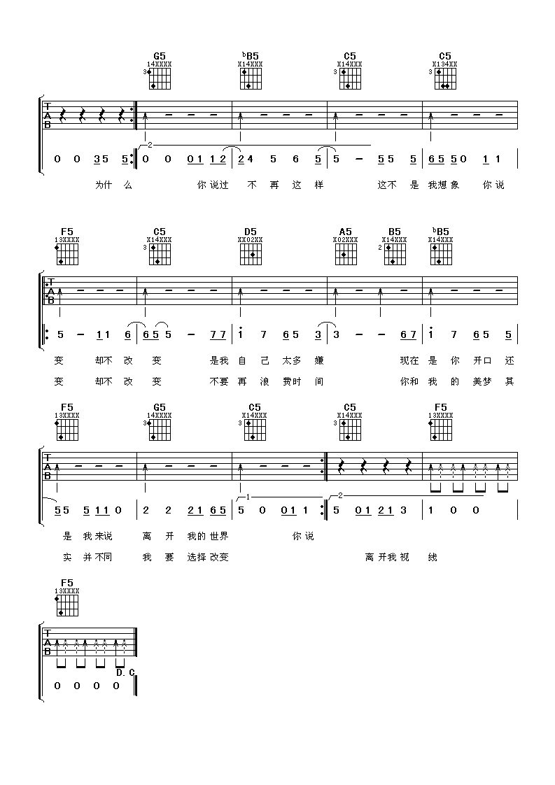 改变吉他谱 - 俞思远 - F调吉他弹唱谱