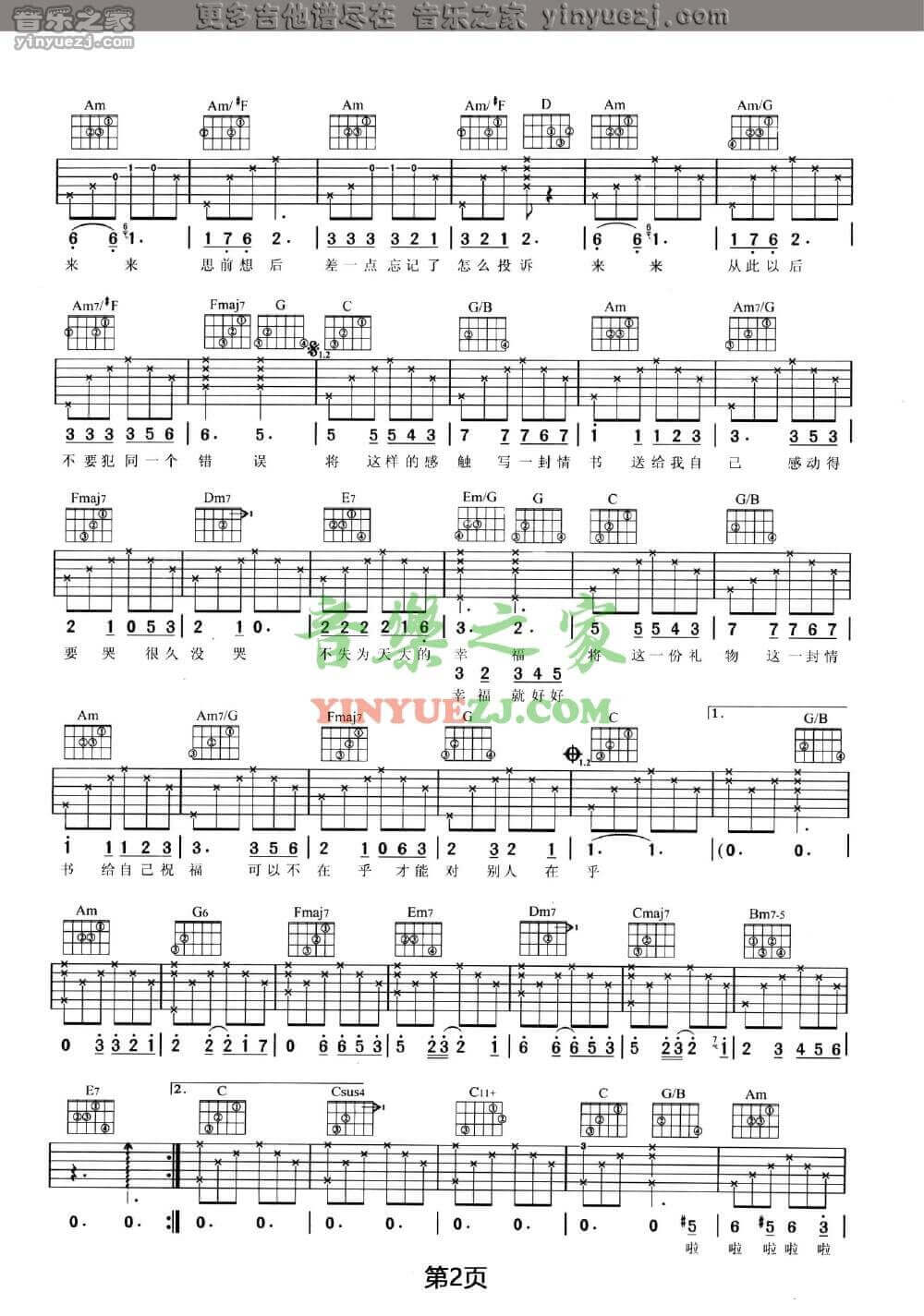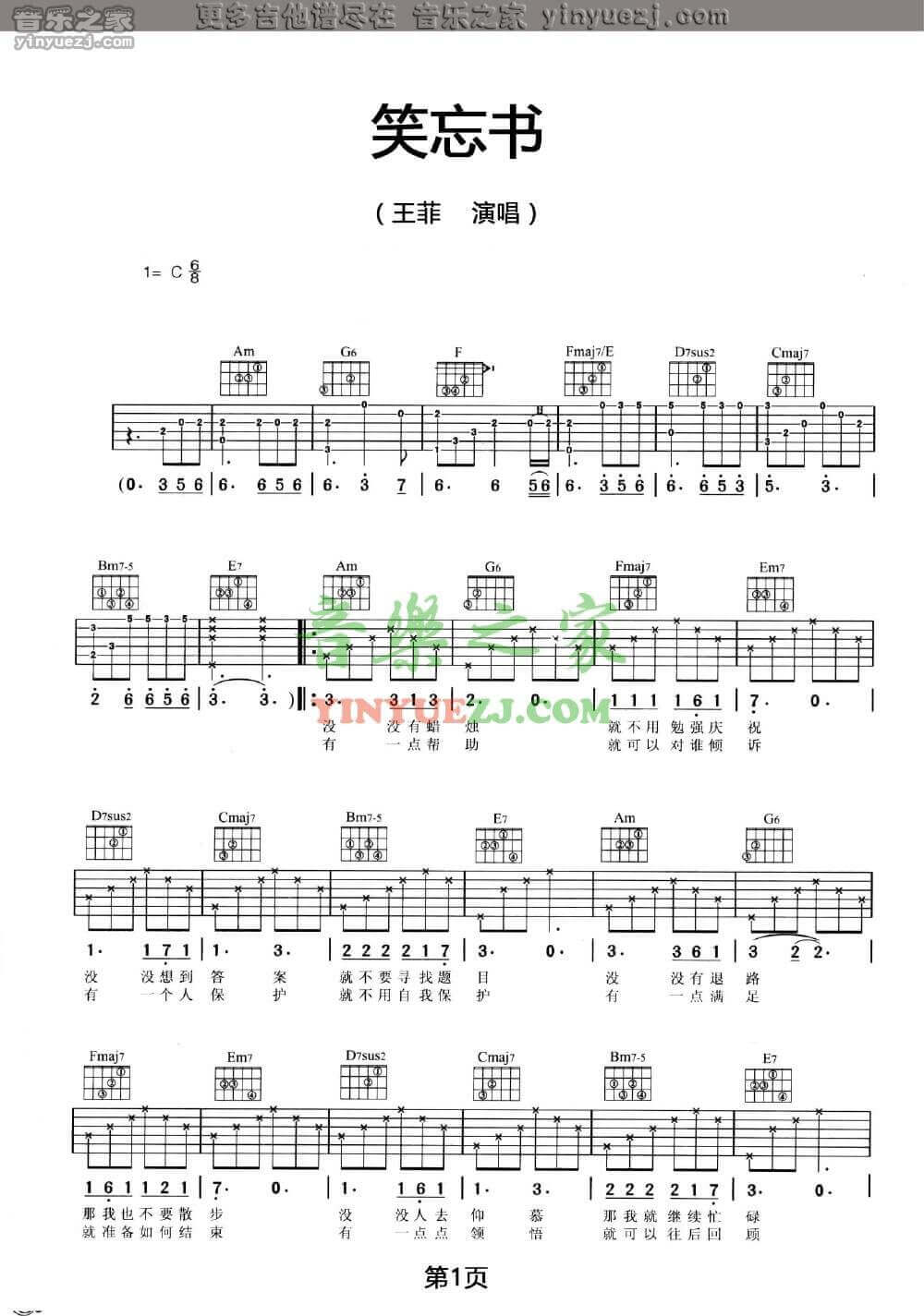 曲谱介绍: 笑忘书吉他谱采用了C调指法,由音乐之家编配完成。王菲的《笑忘书》,慵懒随性,就像是清澈见底的溪流,让我们看到了强烈的自我诉求。除了这首谱以外,又失恋了吉他谱也非常不错,速度去围观一下吧!