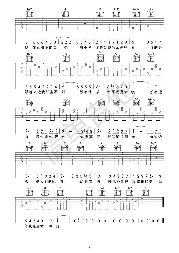曲谱介绍: 《彩虹》吉他弹唱谱,采用C调指法编配,共有2张高清图谱,免翻页排版设计。