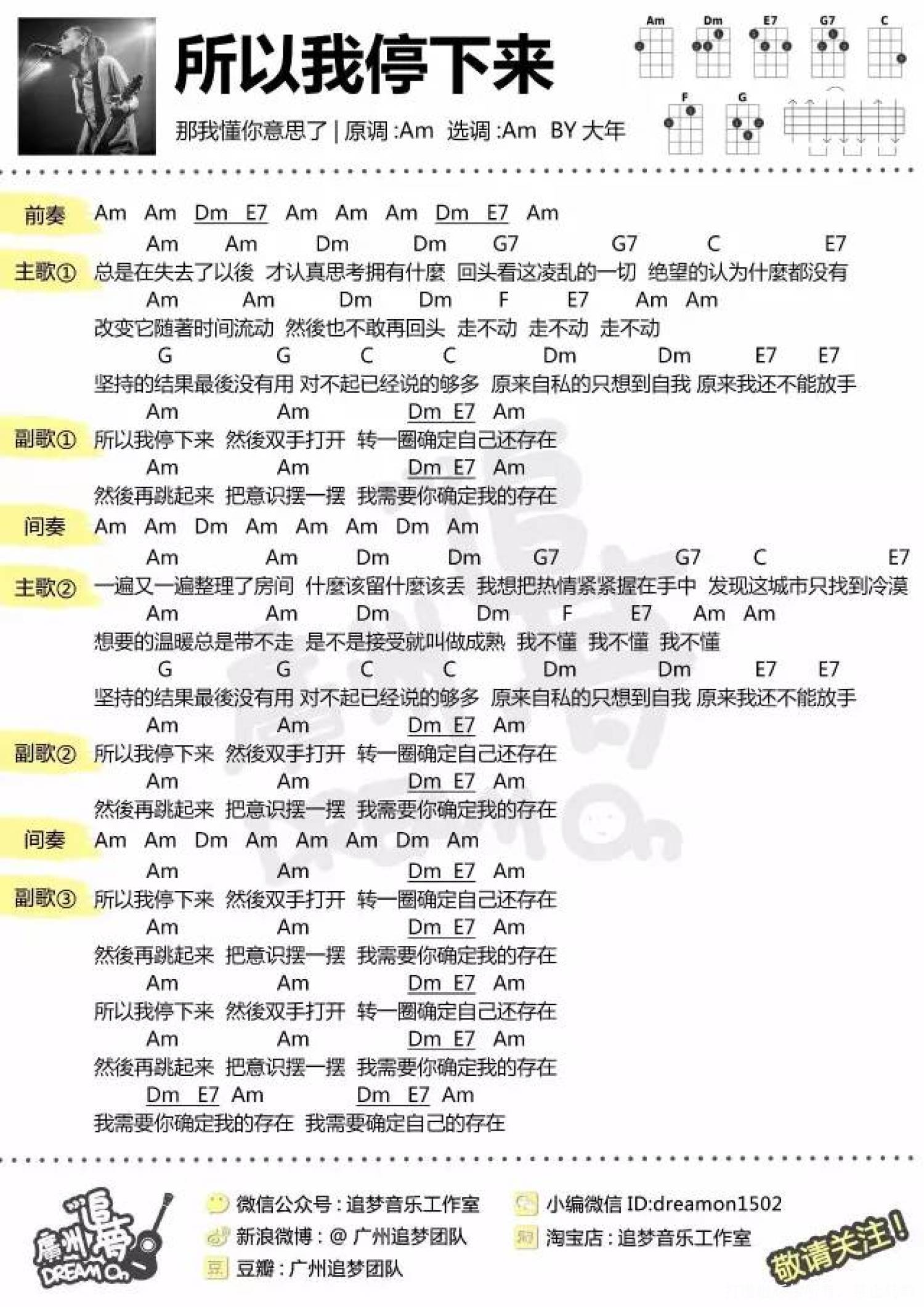 当前位置:琴谱网>尤克里里>所以我停下来