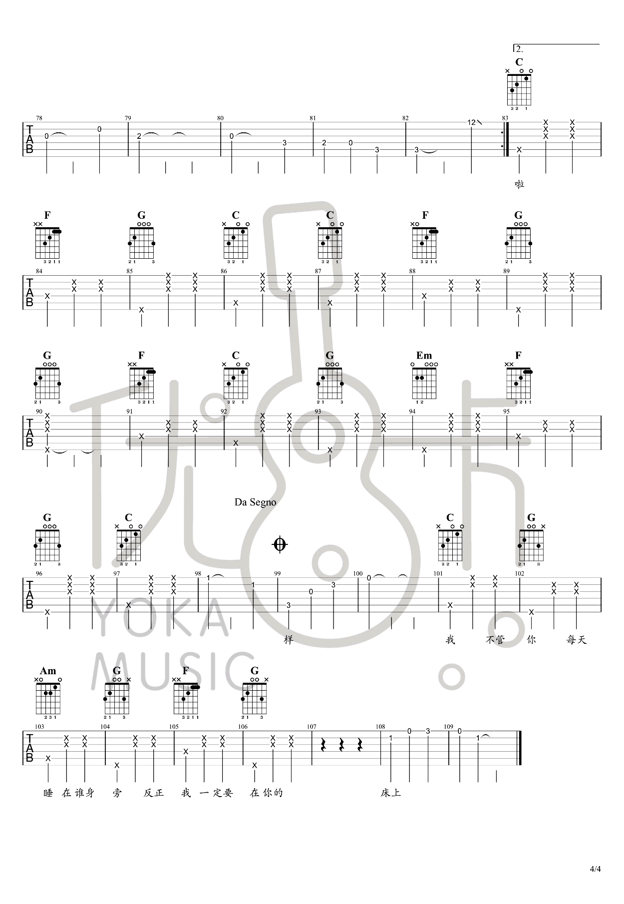 吉他弹唱C调来源:优卡175 浏览2024-02-03 21:04发布图谱共4页