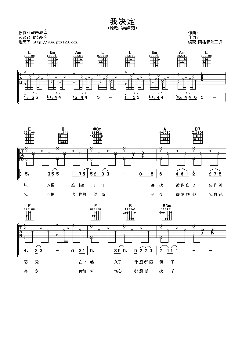 我决定吉他谱 - 梁静茹 - F调吉他弹唱谱