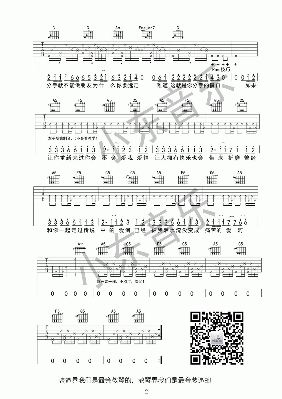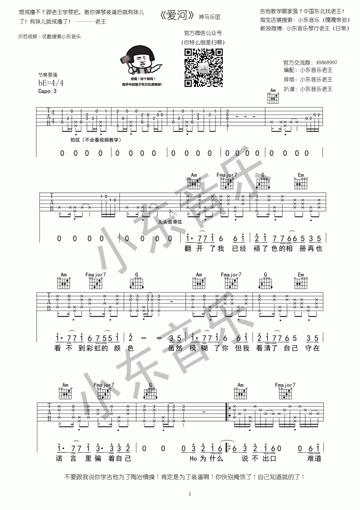 曲谱介绍: 神马乐团《爱河》吉他弹唱谱,共有2张高清图谱,免翻页排版设计。