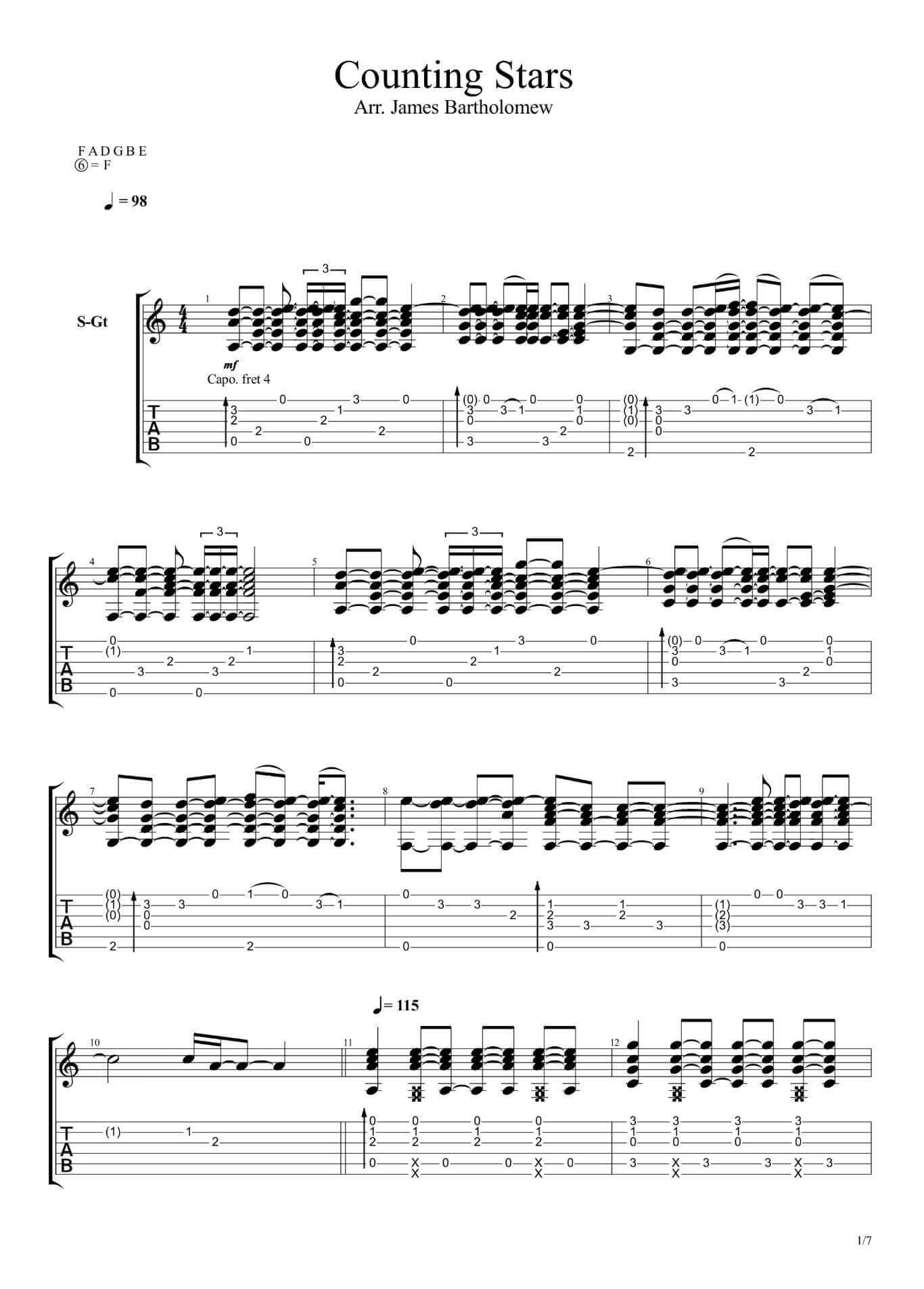 曲谱介绍: countingstars吉他谱采用了F调指法,这首歌曲的旋律很有节奏感,TIPS:在这里向大家推介另外一首,它就是潇洒走一回吉他谱啦,非常动听的一首曲子! 吉他弹唱演示及视频教学 吉他弹唱演示及视频教学